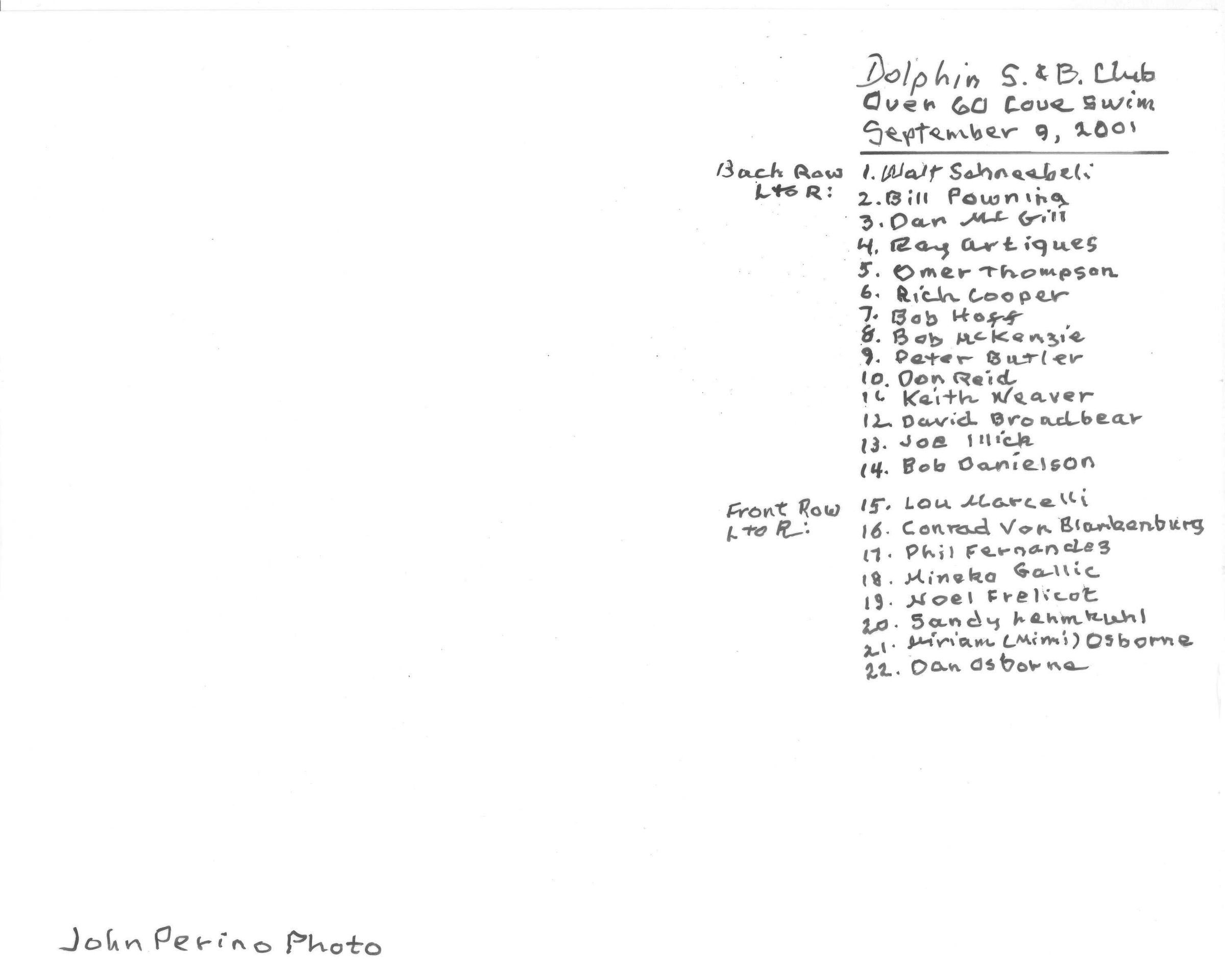 Over 60 Cove Swim 2001:
