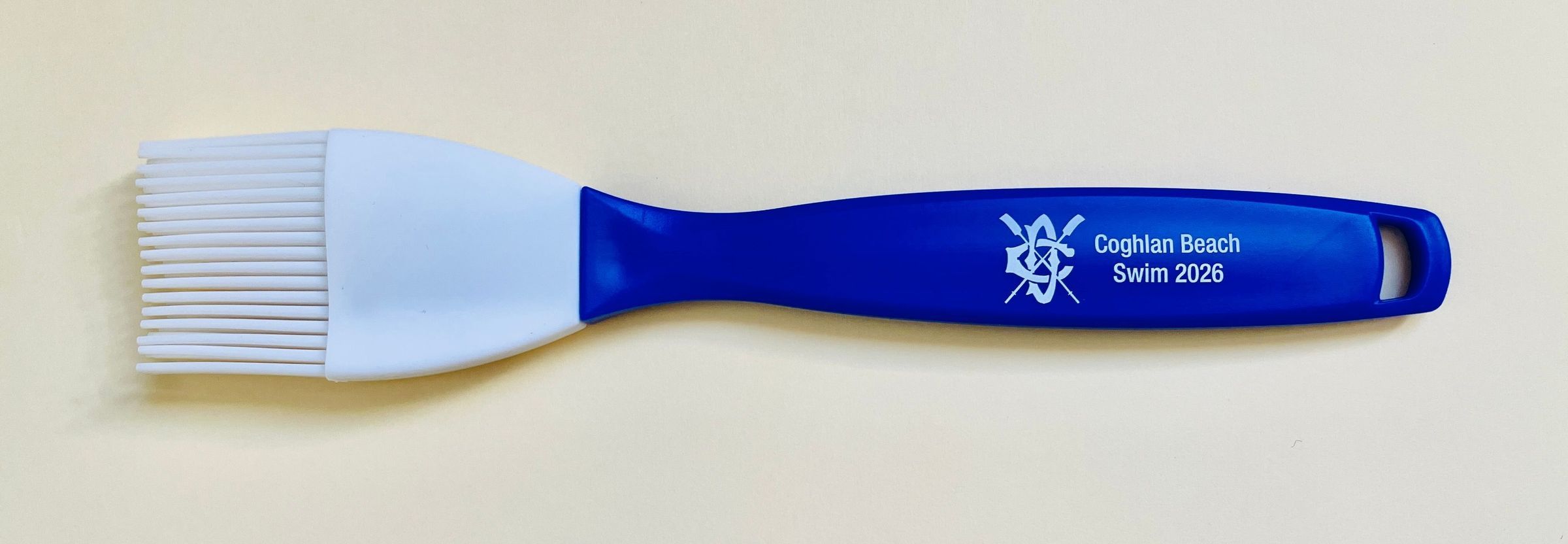 Text in white: Crossed Oars logo - Coughlan Beach - Swim 2026Dimensions