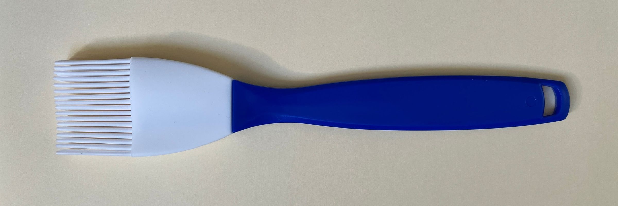 Silicon pastry or basting brush. Blue handle, white brush.