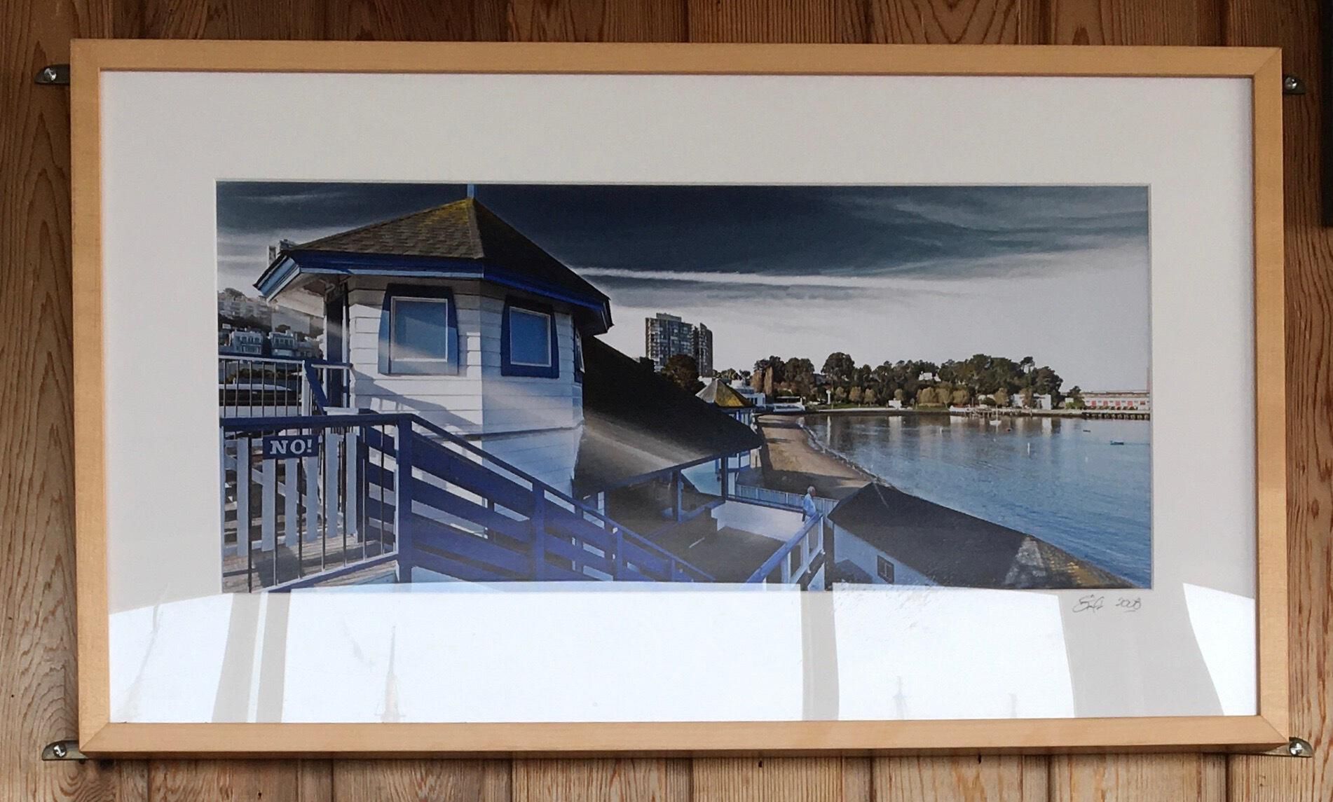 Light color wood frame, glass, white mat.