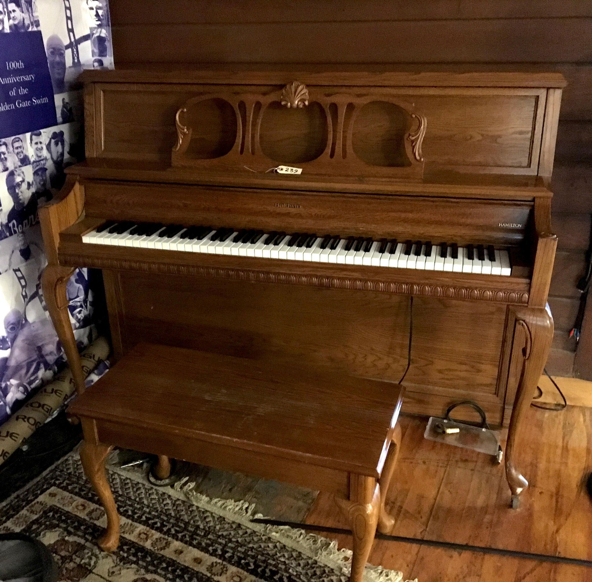 "Hamilton" in metal letters on wood on right side above keyboard.Made/Created