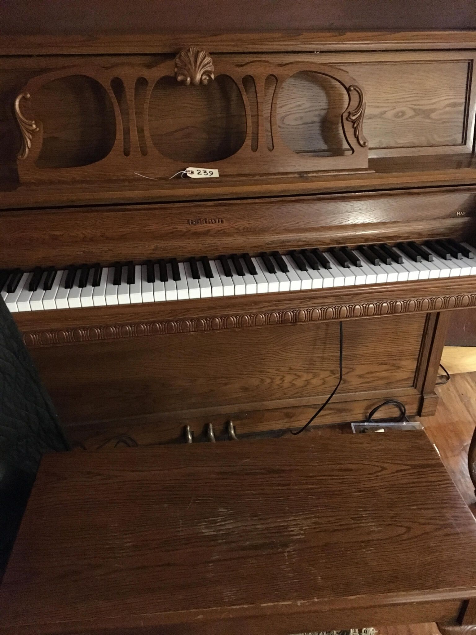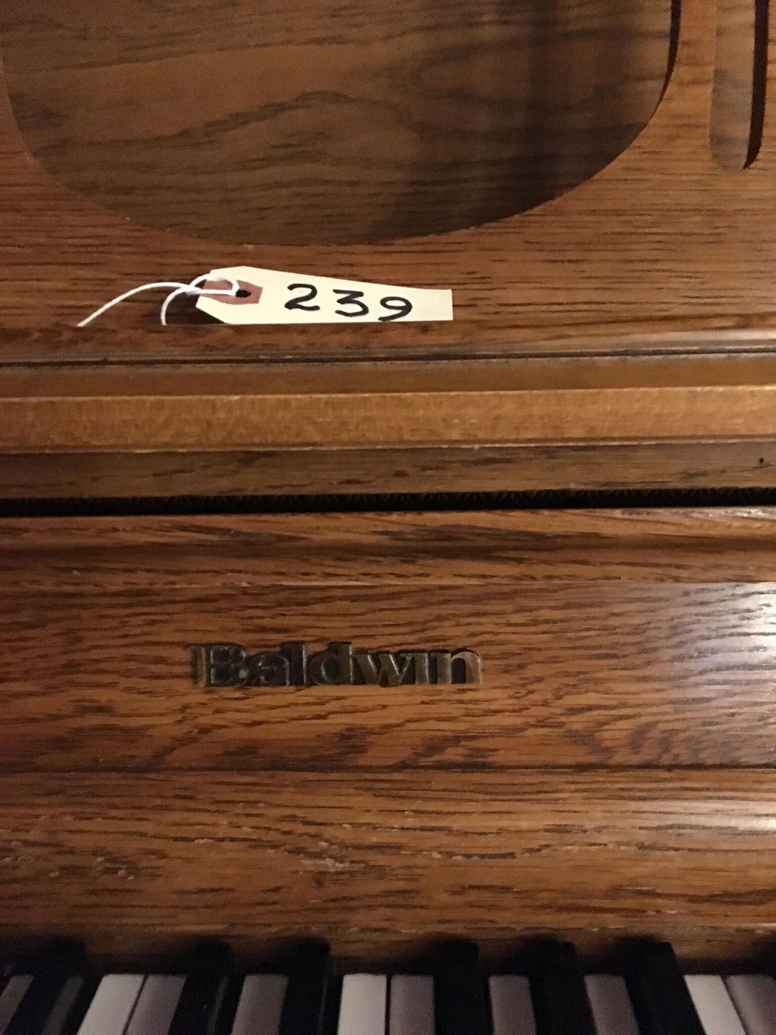 "Baldwin" in center above keyboard.