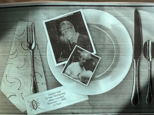 Paper placemat made for 2004 Ladies Luncheon. This lunch is for women who are 20+year members. Robin Rome created the collage and had the placemats printed. The 2004 lunch was dedicated to Rico "Moon" Passanisi.