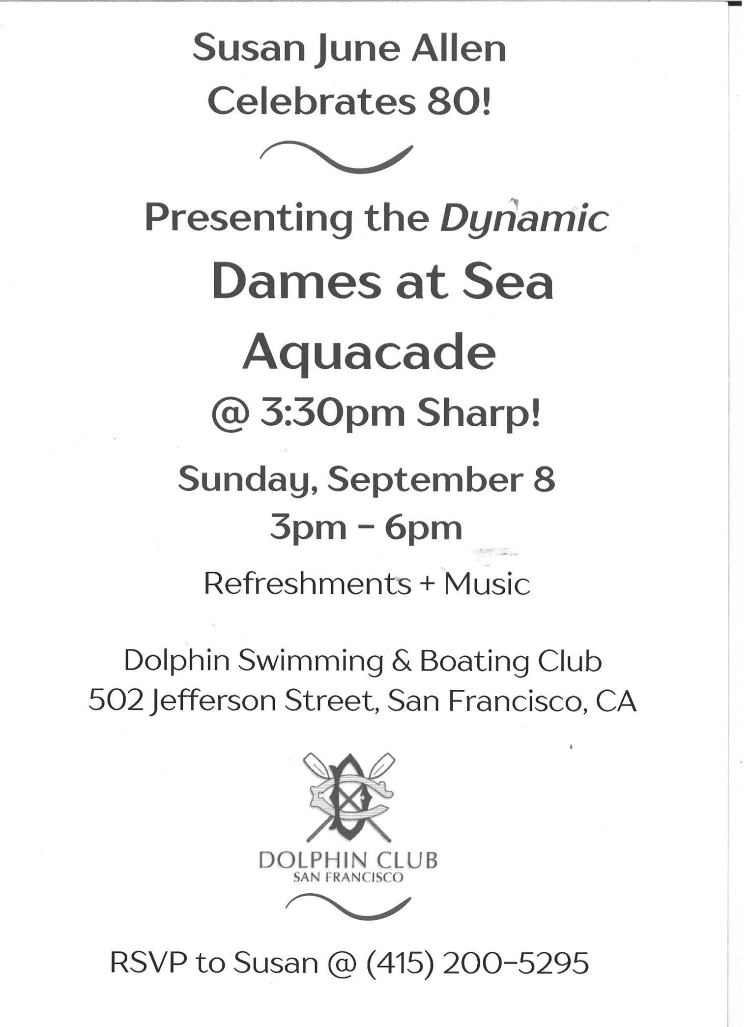 Cup was used at a celebration at the Club on September 8, 2024 which featured an artistic swimming show, organized Lorna Newlin, to mark Susan's 80th birthday on September 10, 2024.