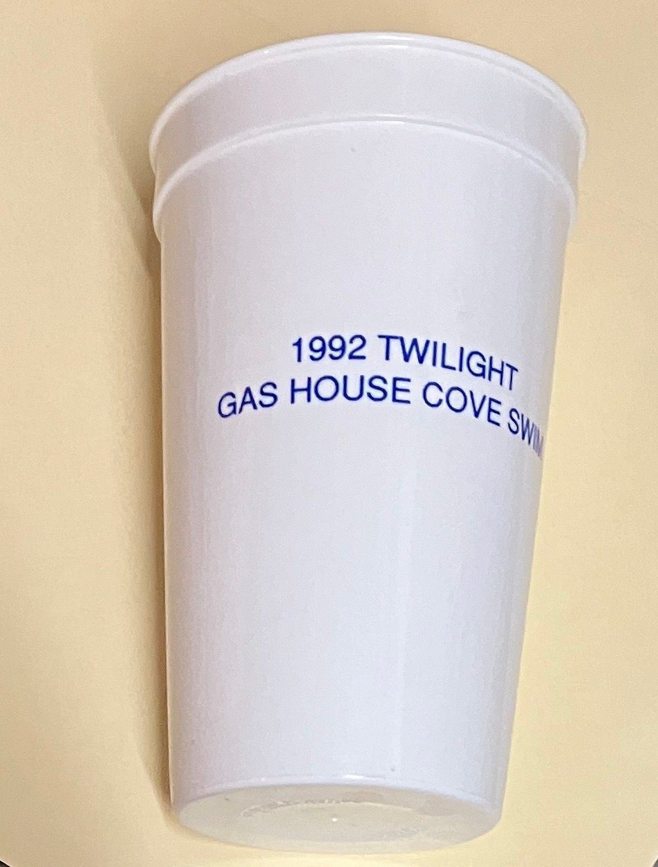 Printed on back in blue:1992 Twilight - Gas House Cove SwimUse