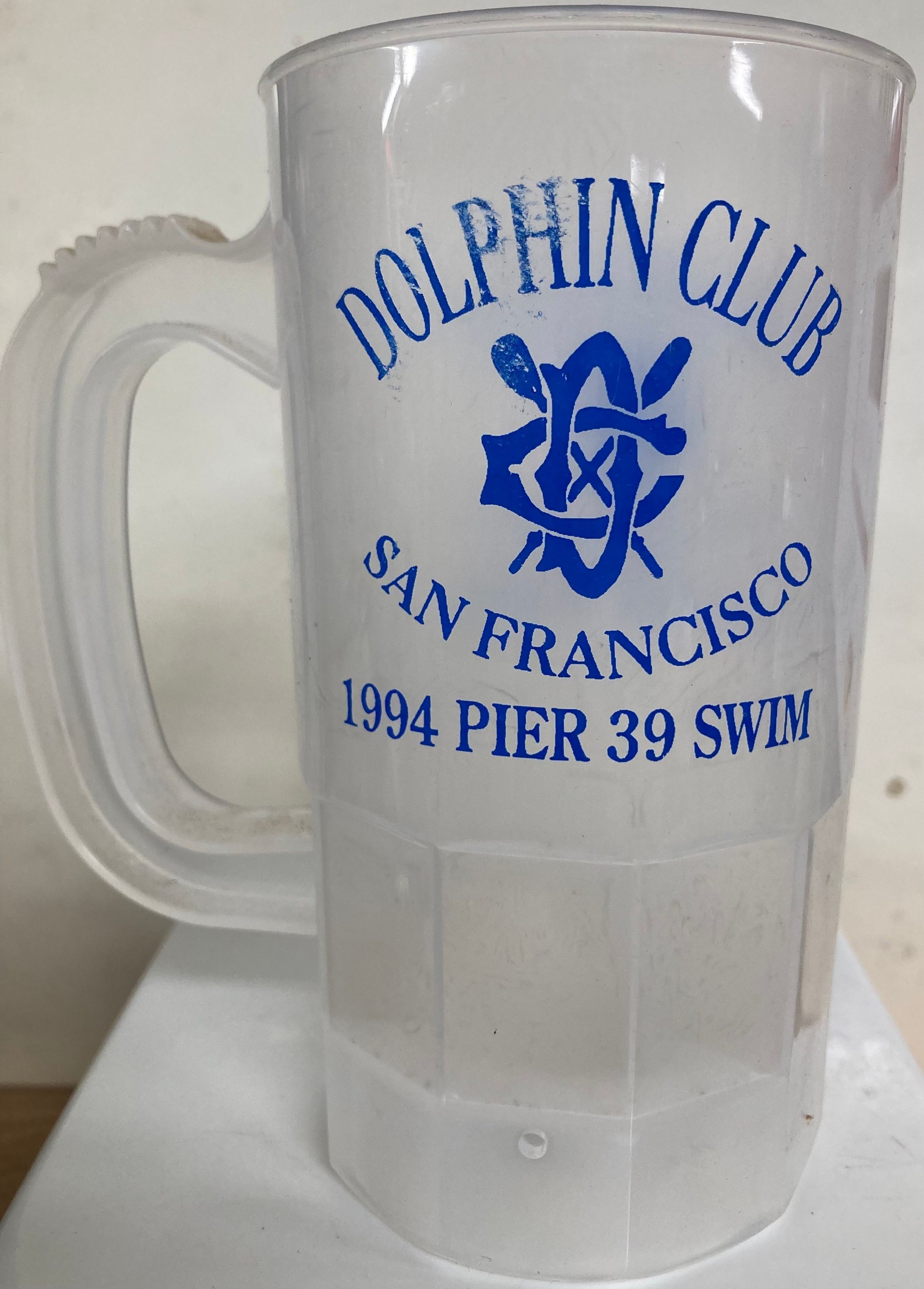 Text: "Dolphin Club - crossed oars logo - San Francisco - 1994 Pier 39 Swim."Use