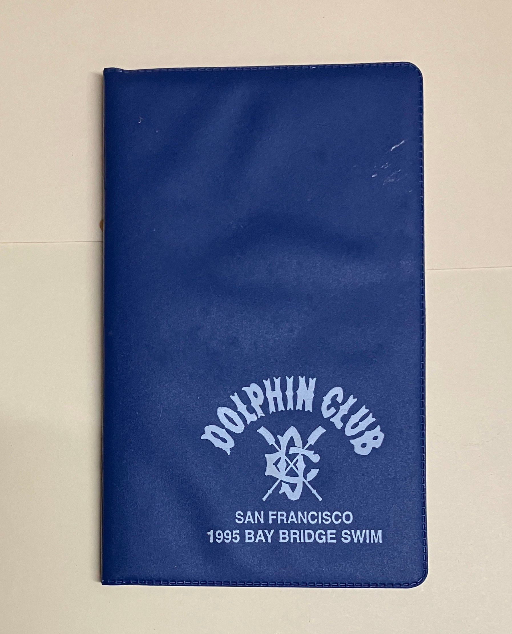 Printed on front in white: Dolphin Club - crossed oars logo - San Francisco - 1995 Bay Bridge SwimUse