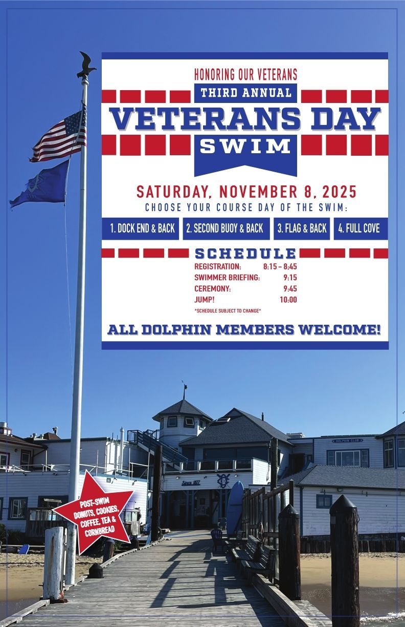 Digital poster for Veterans Day swim 2025.