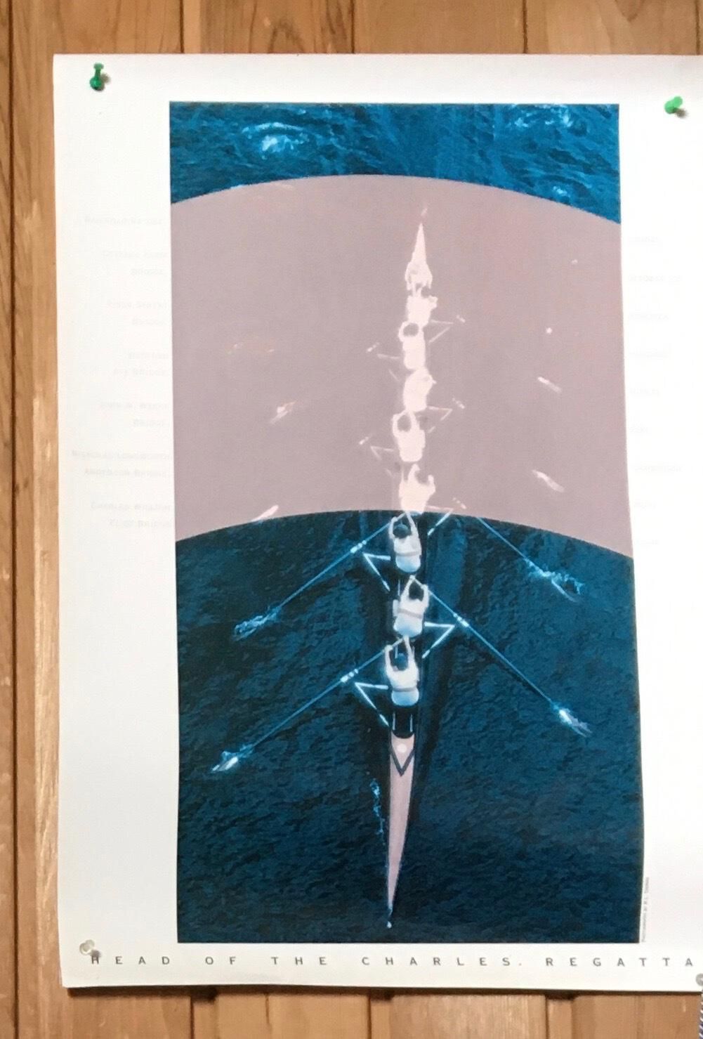 Poster of six seat scull plus coxswain from aerial view. Text: "Head of the Charles"