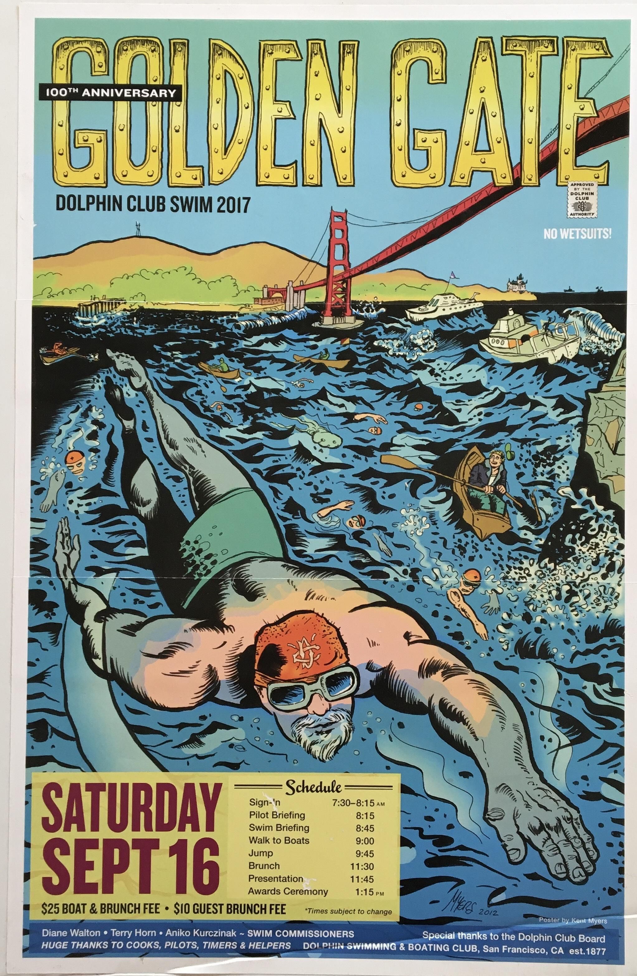 Poster for 2017 100th Anniversary Golden Gate Swim September 16, 2017.
