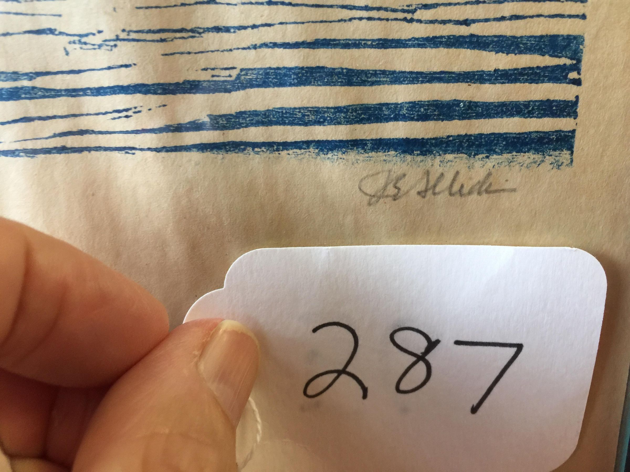 2021June: Second copy of this print 62/100 blue ink in small office in cupola.