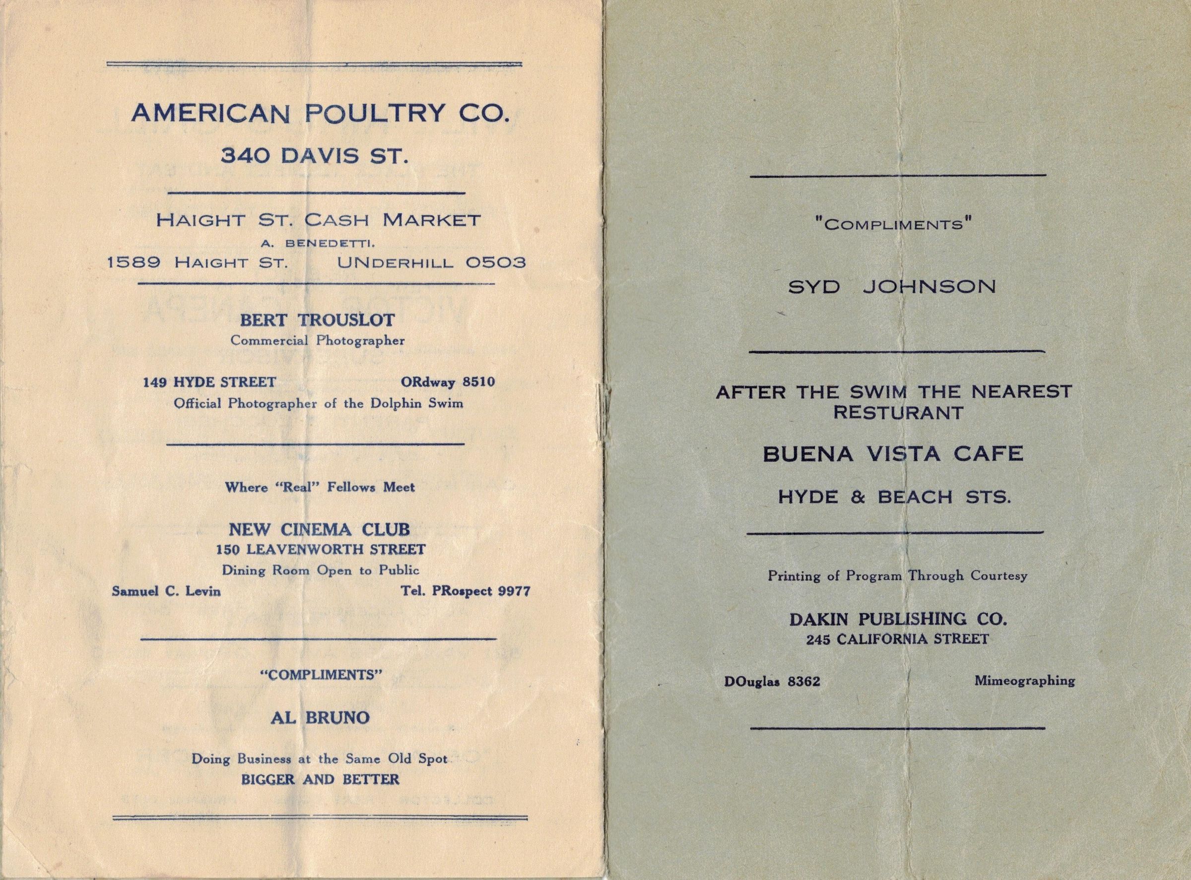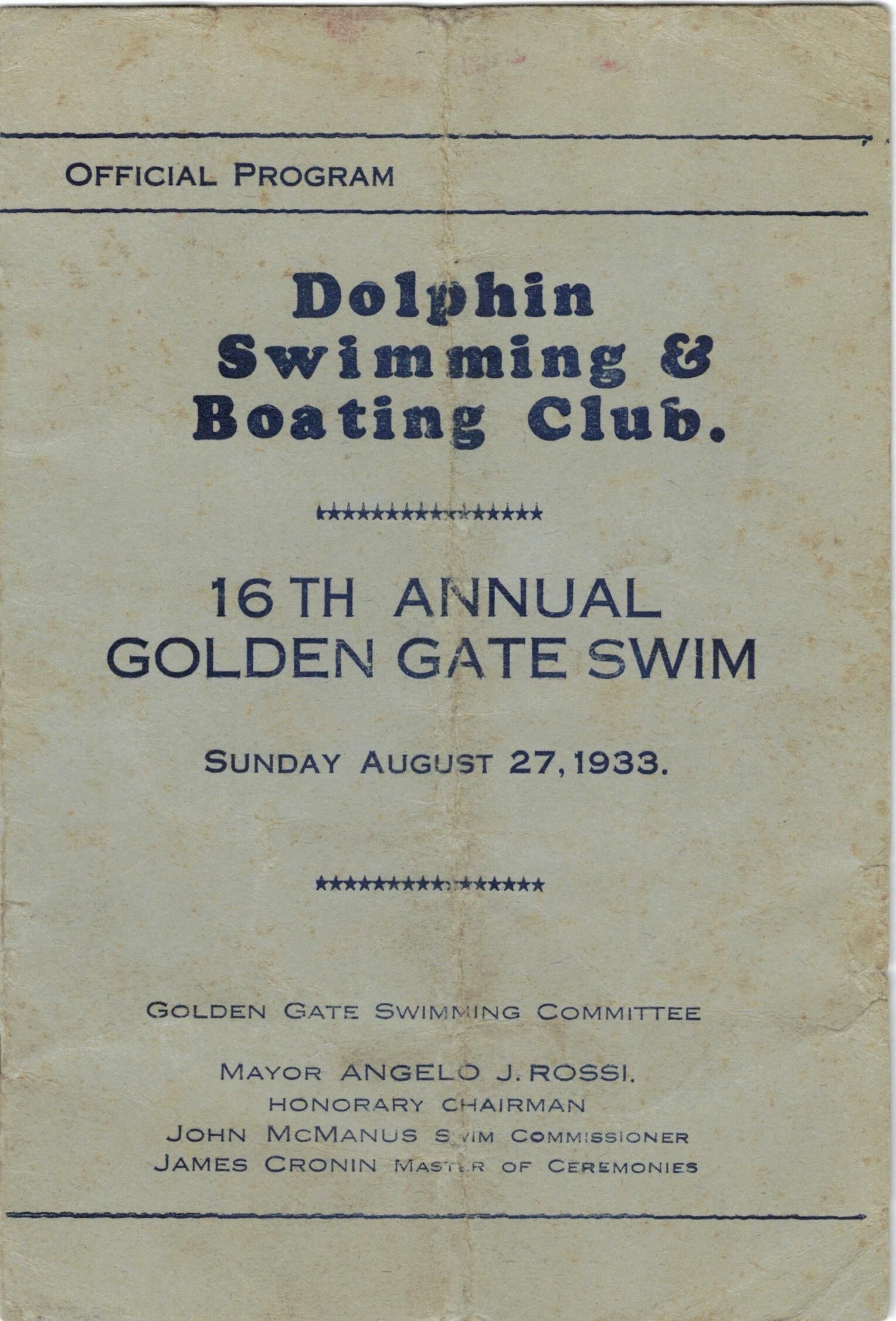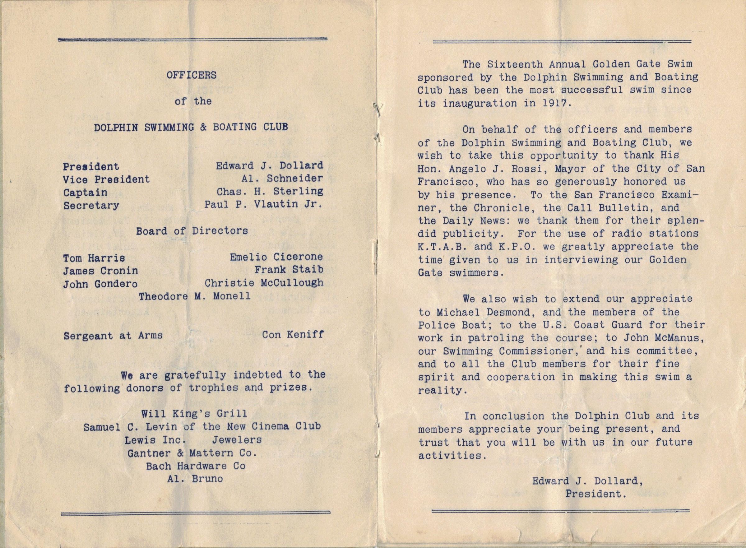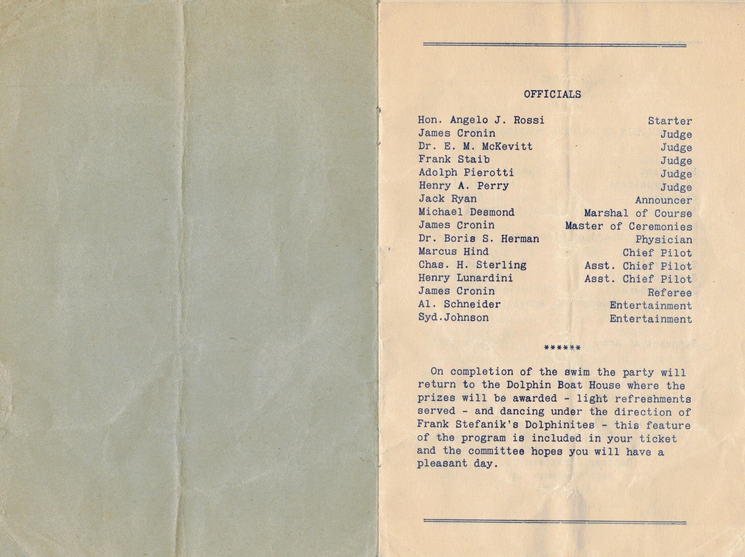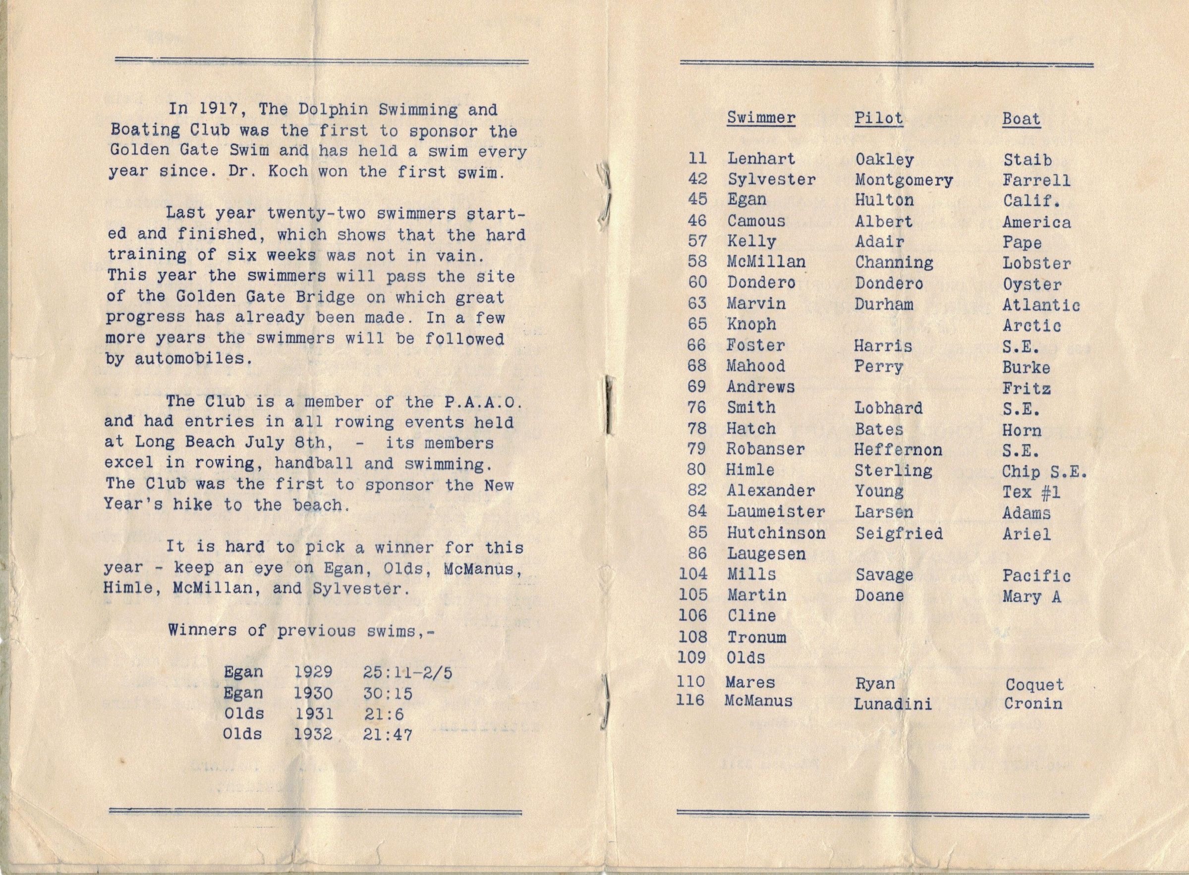 Program for 1933 Golden Gate SwimEntry/Object ID