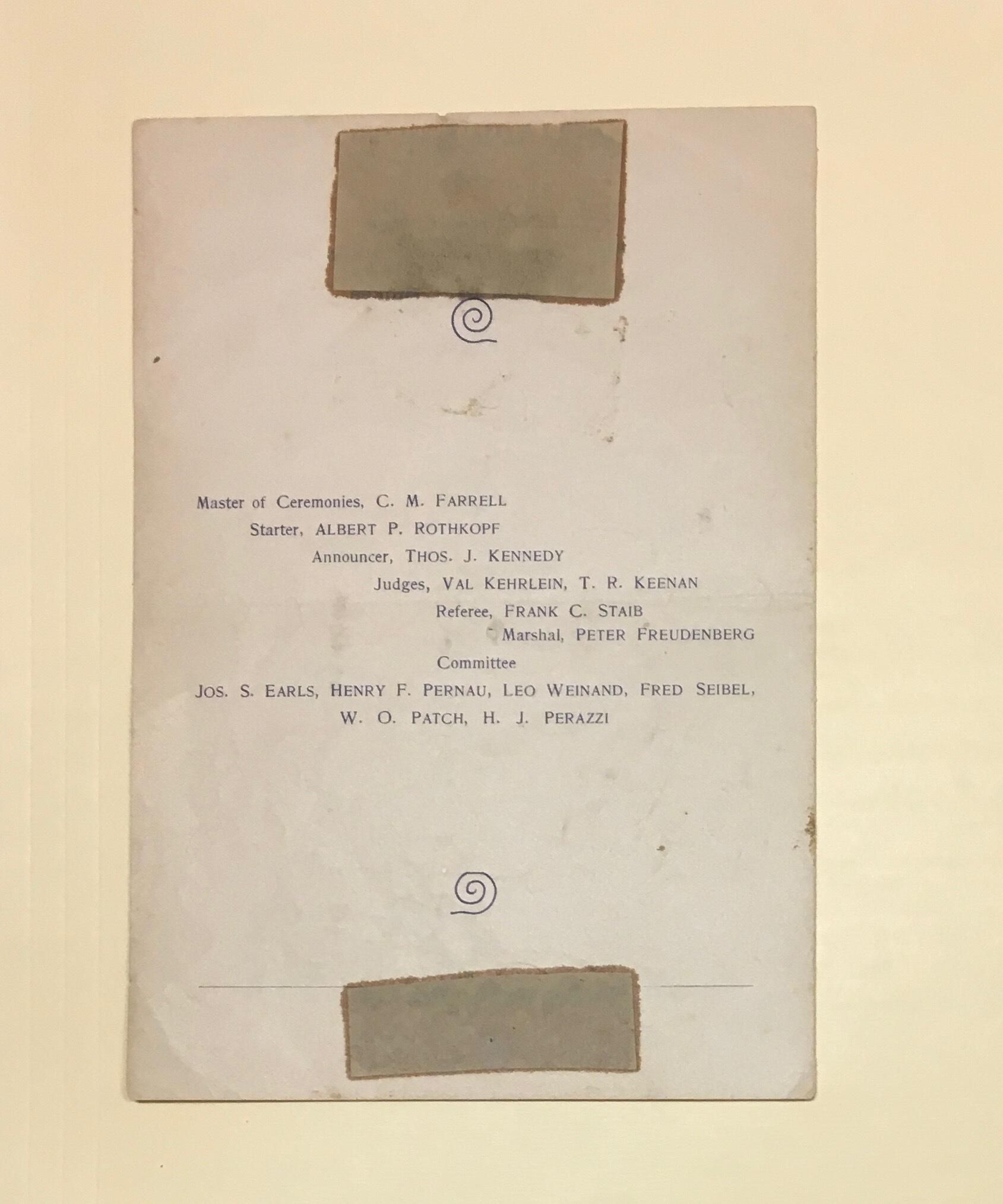 Inside of pamphlet lists details of 15 races and exhibitions.