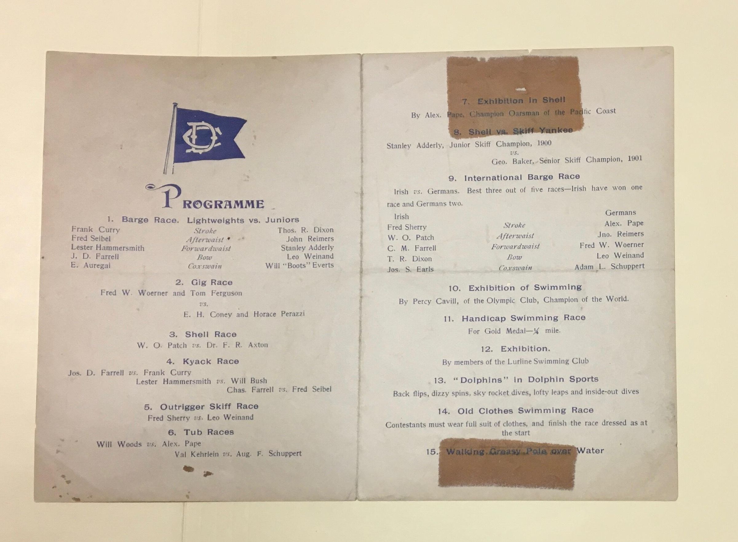 Program for annual Ladies Day and Regatta October 13, 1901 to take place at the club house, foot of Van Ness i.e. "Campo Bello Cove."