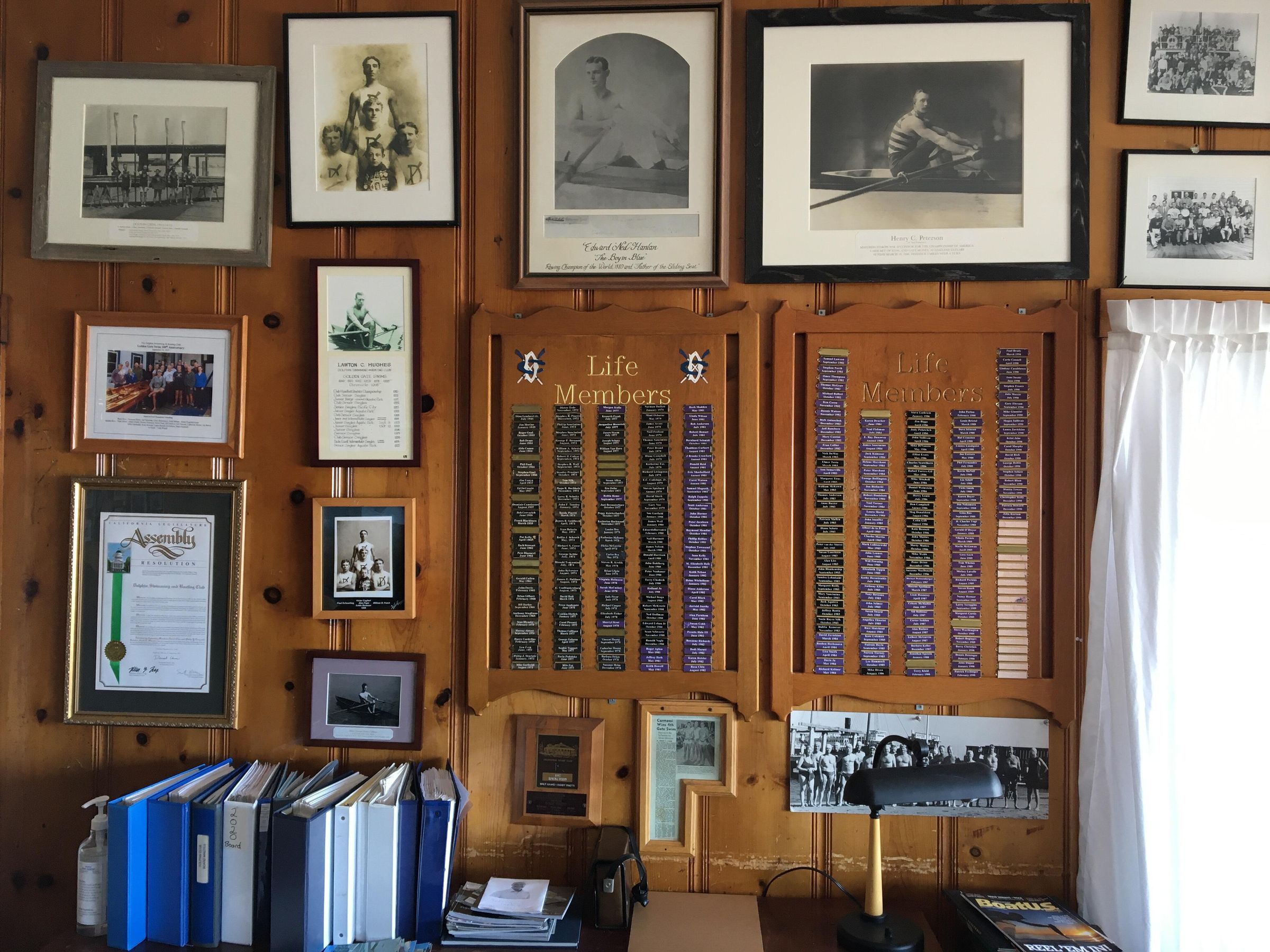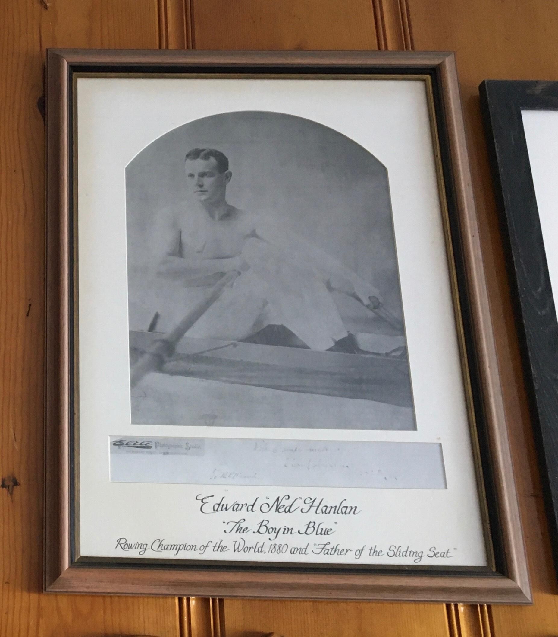 Caption on bottom in script: Edward "Ned" Hanlon - "The Boy in Blue" - Rowing Champion of the World 1880 and "Father of the Sliding Seat."