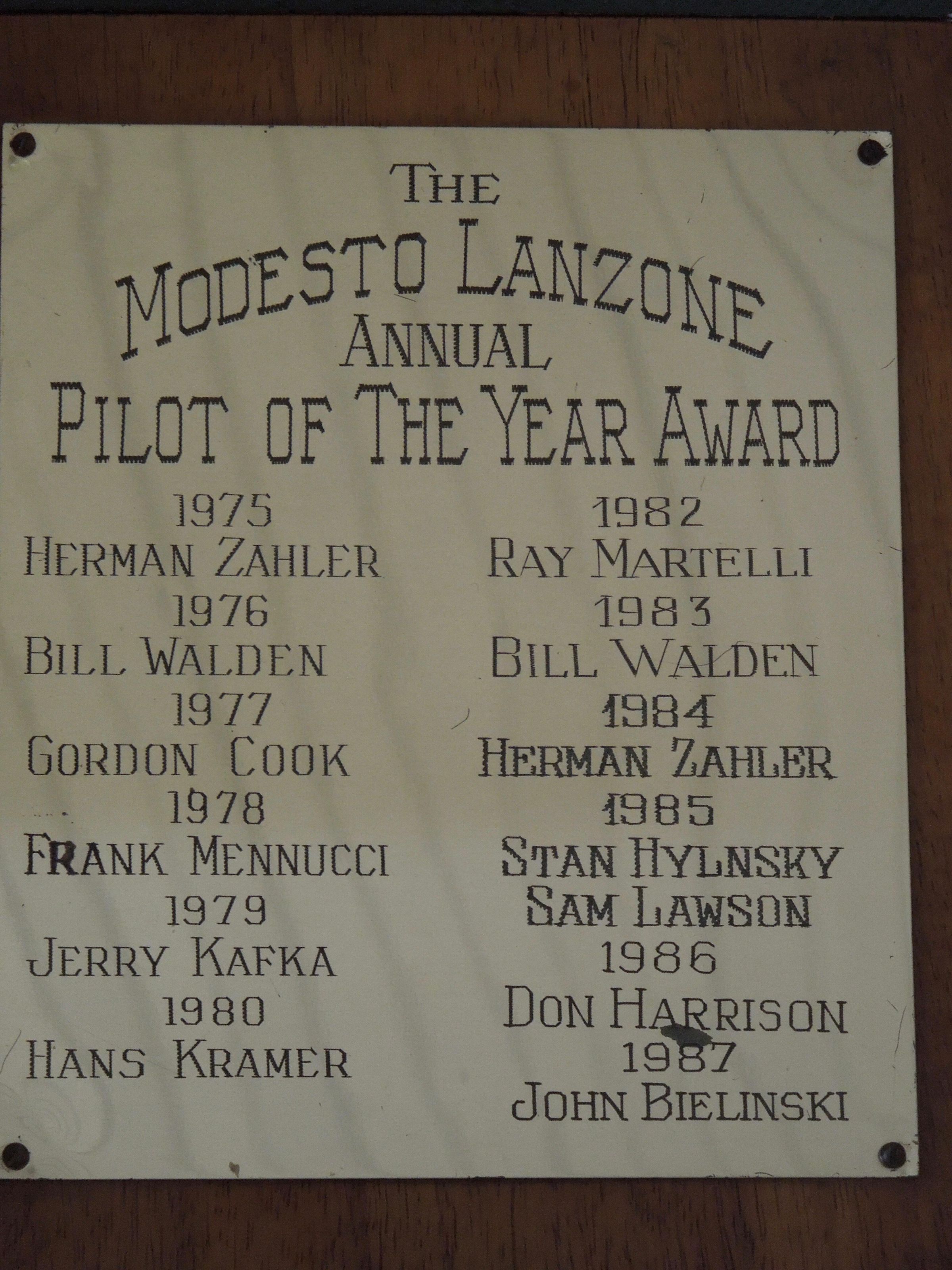 Cook won pilot of year in 1977; Cook also made original bronze sculpture of boat and waves for top of trophy, which was gone trophy was returned after being stolen.Person or Organization