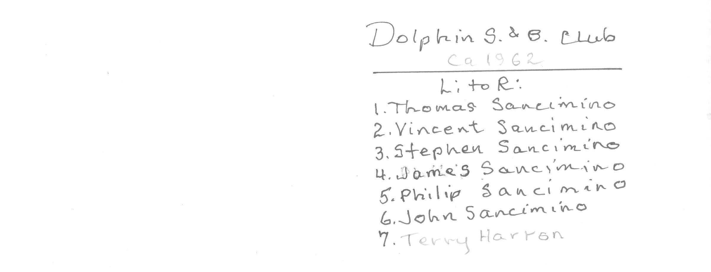 Sancimino Boys 1962 - Tom, Vince, Steve, Jim, Philip, John, plus Terry HarranSubject Person or Organization