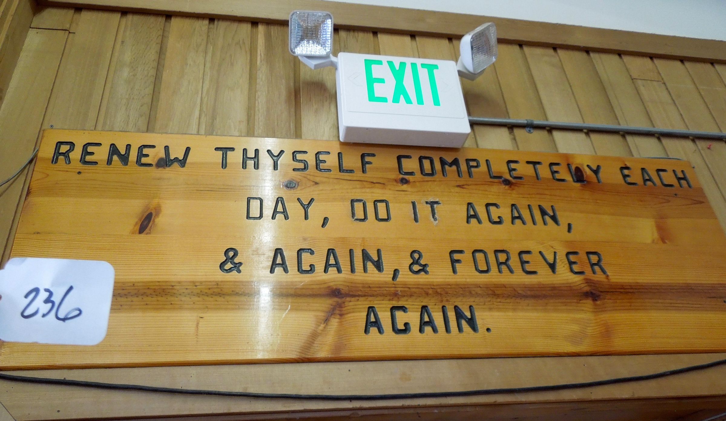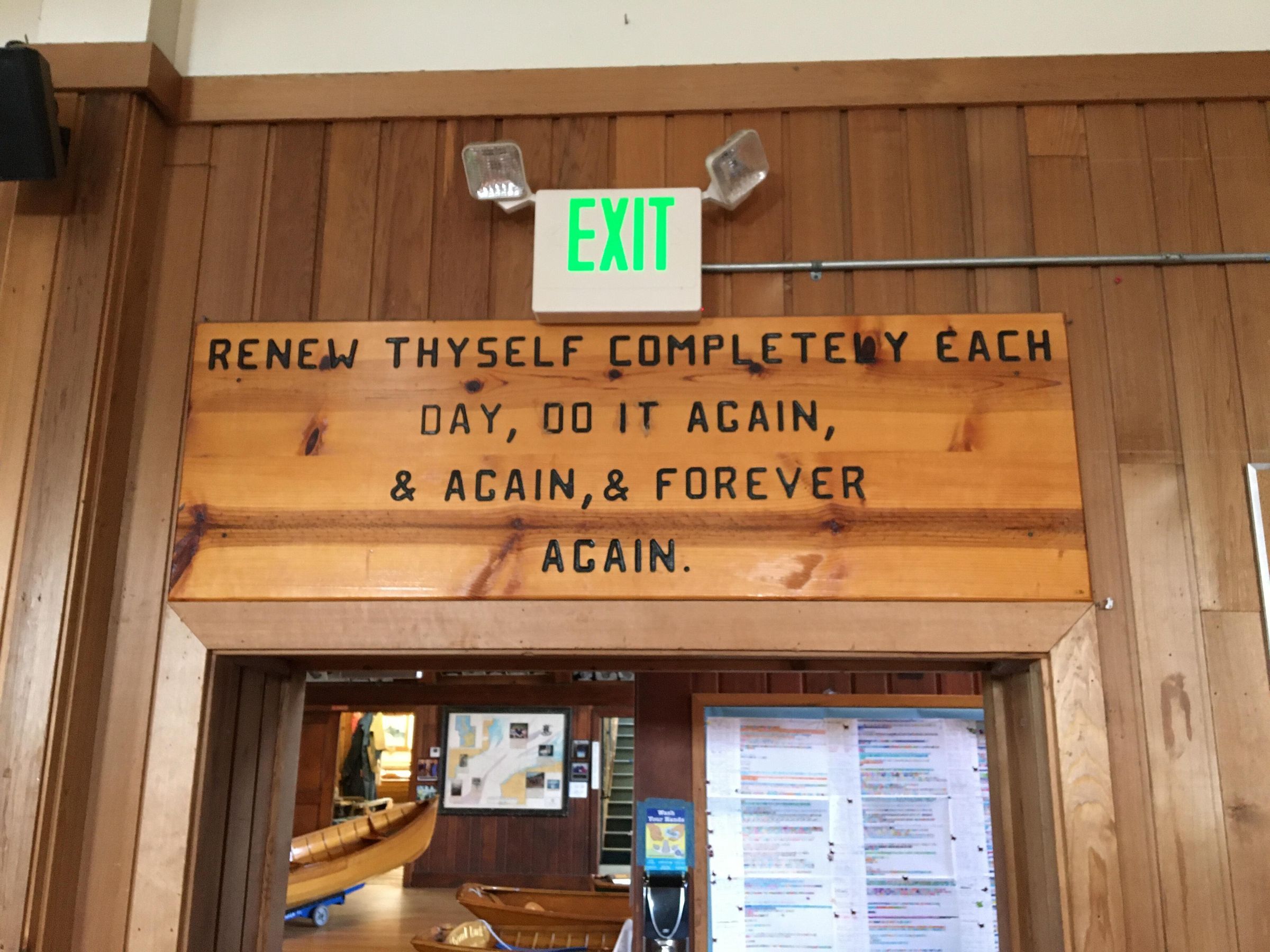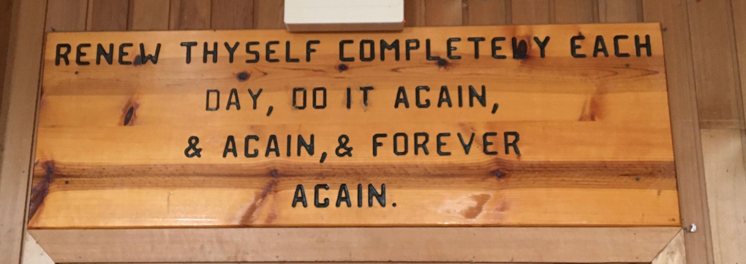 Text: "Renew thyself completely each - day, do it again, - & again, forever - again."