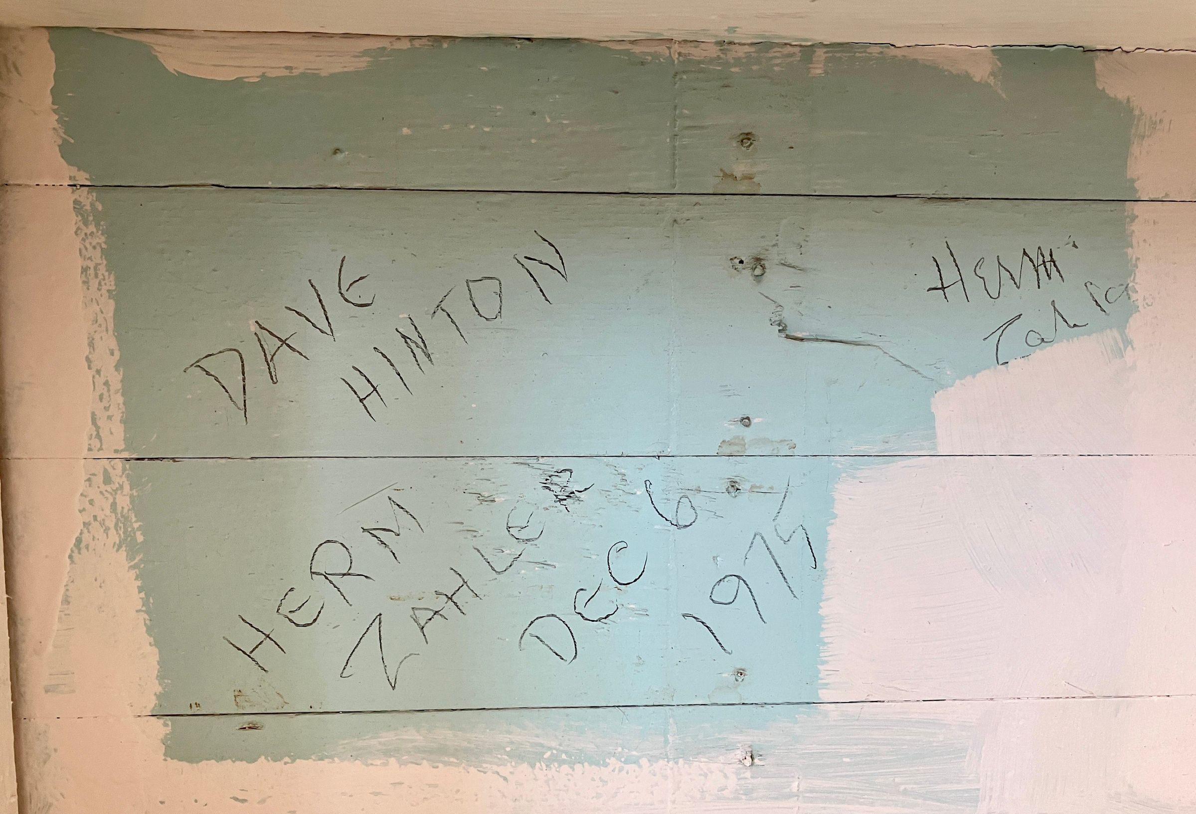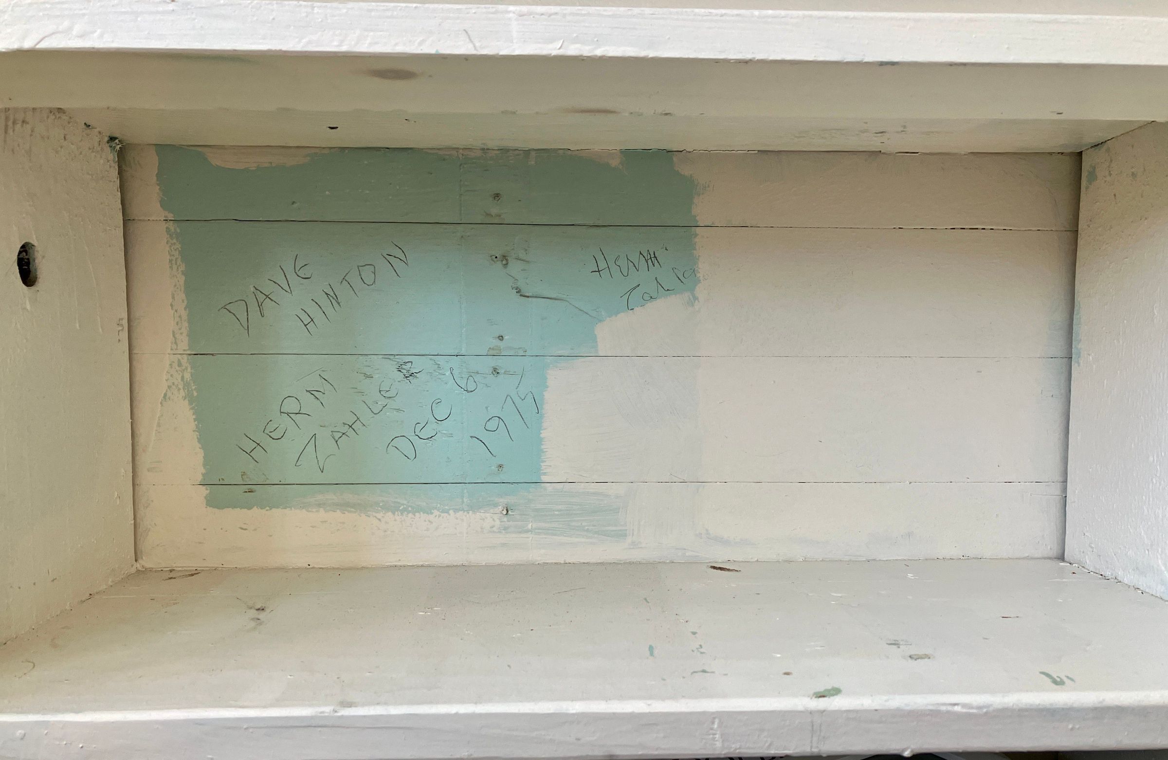 In 1975, Dave Hinton was Recording Secretary and Herman Zahler was Boat Captain. They also did work on the building and undertook renovation of the office area, so signed their names on the wall.