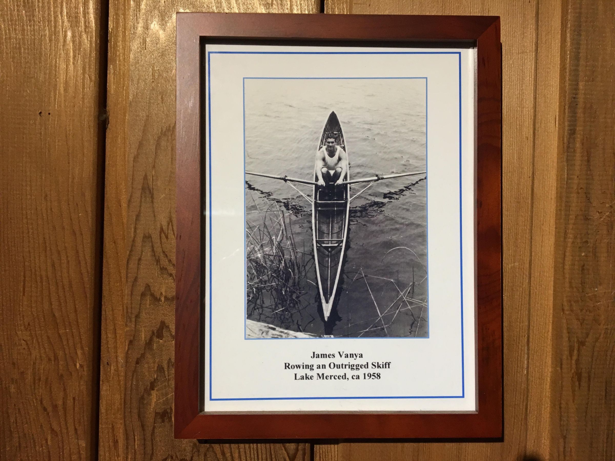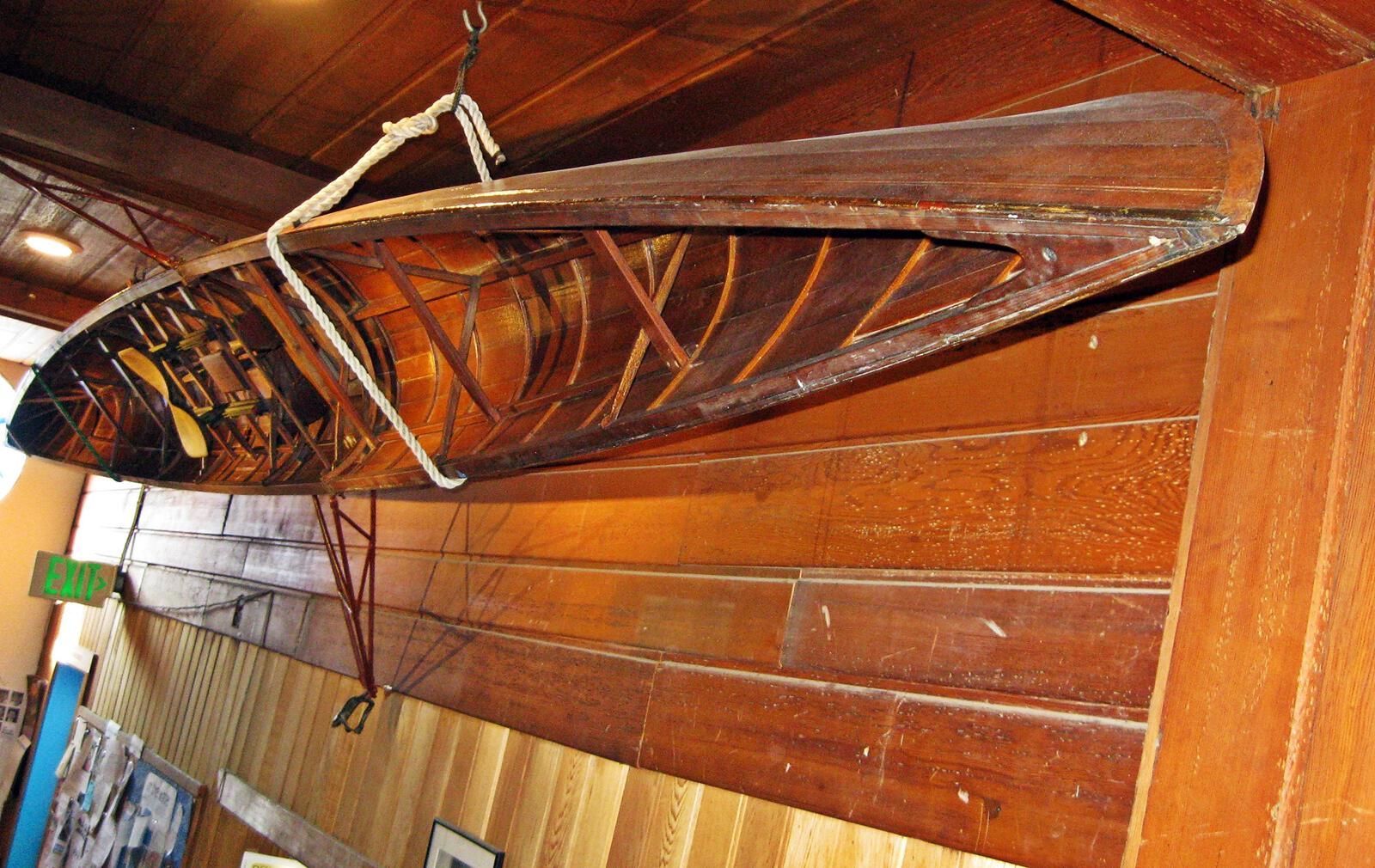 Two framed captions on wall below skiff, see Artifact 258, with additional information.Made/Created