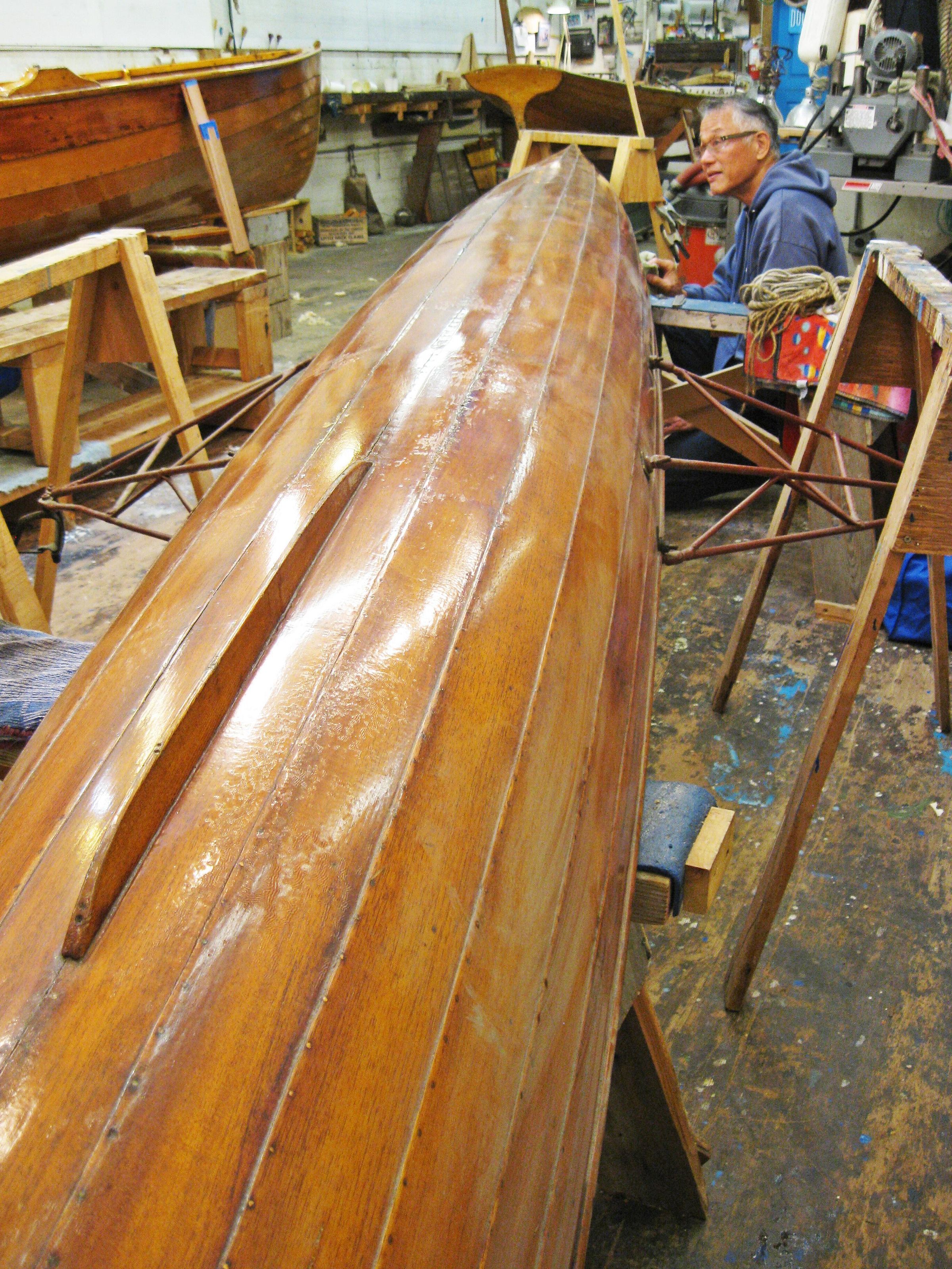 Folder of additional photos of move, installation, and information panels is on hard drive under title "Sausalito Skiff".