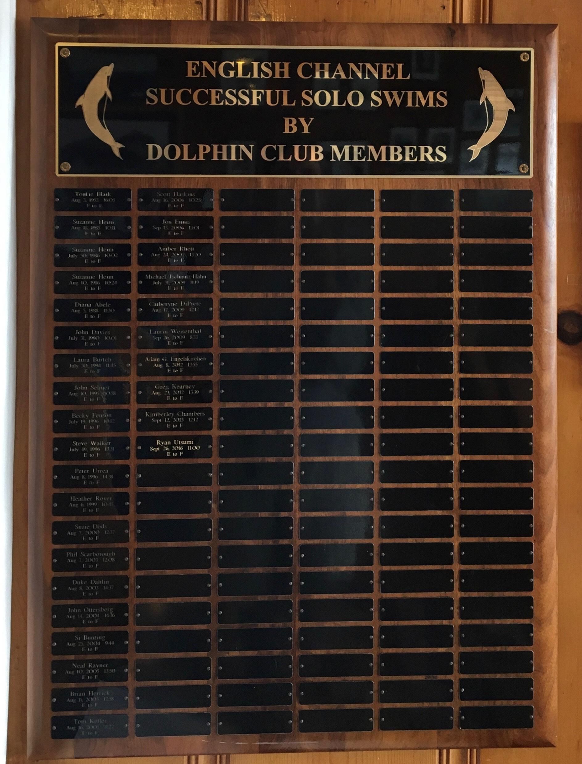 Plaque for "English Channel - Successful Solo Swims - by - Dolphin Club Members"