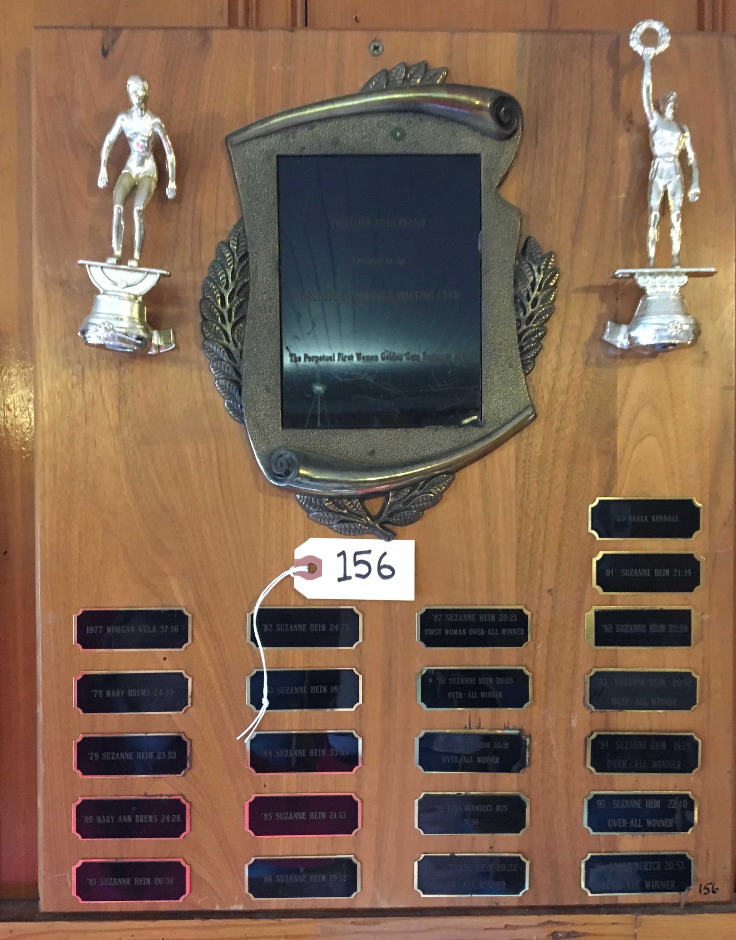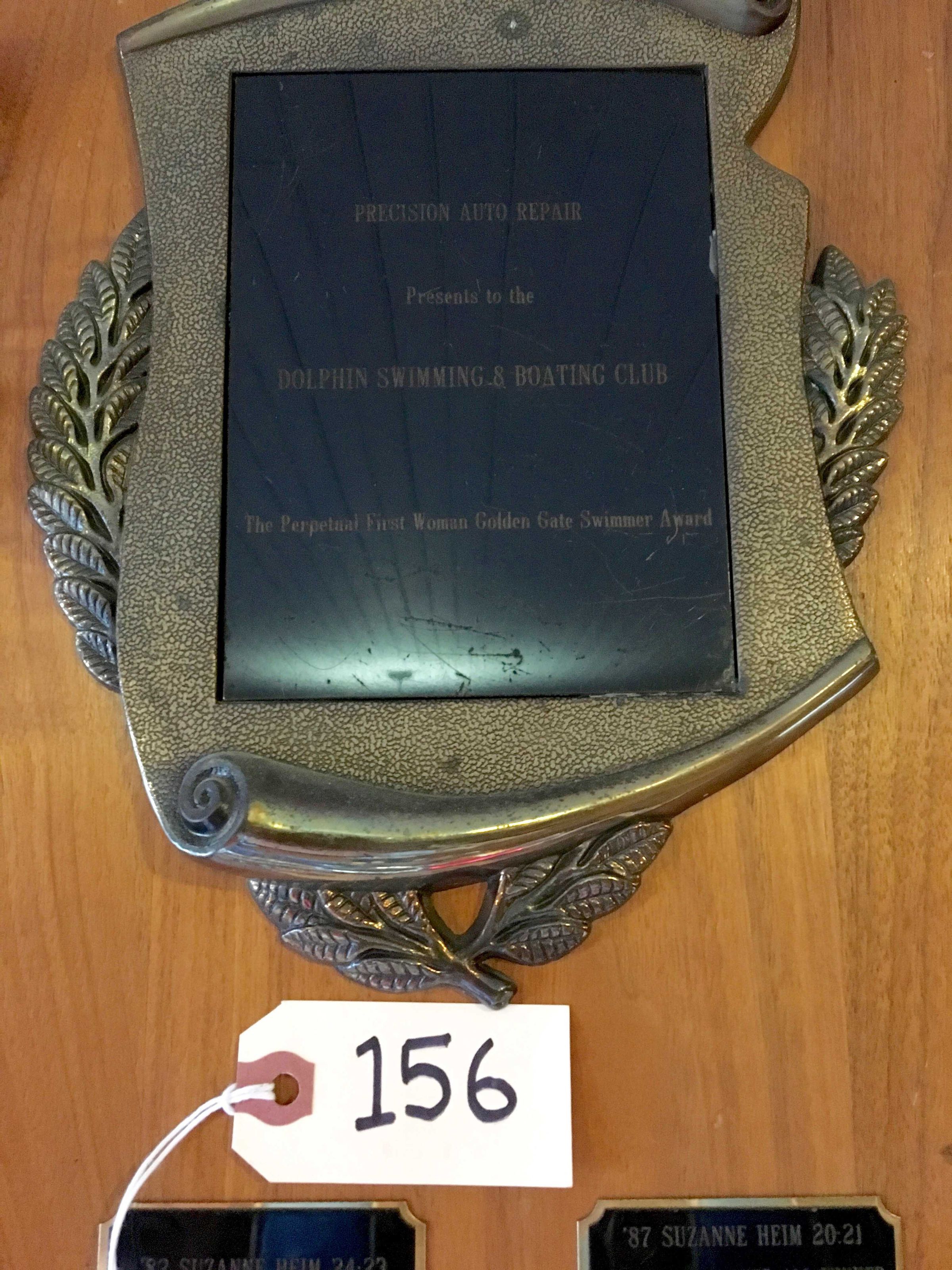 Engraved on black plate: "Precision Auto Repair - presents to the - Dolphin Swimming & Boating Club - The Perpetual First Woman Golden Gate Swimmer Award"