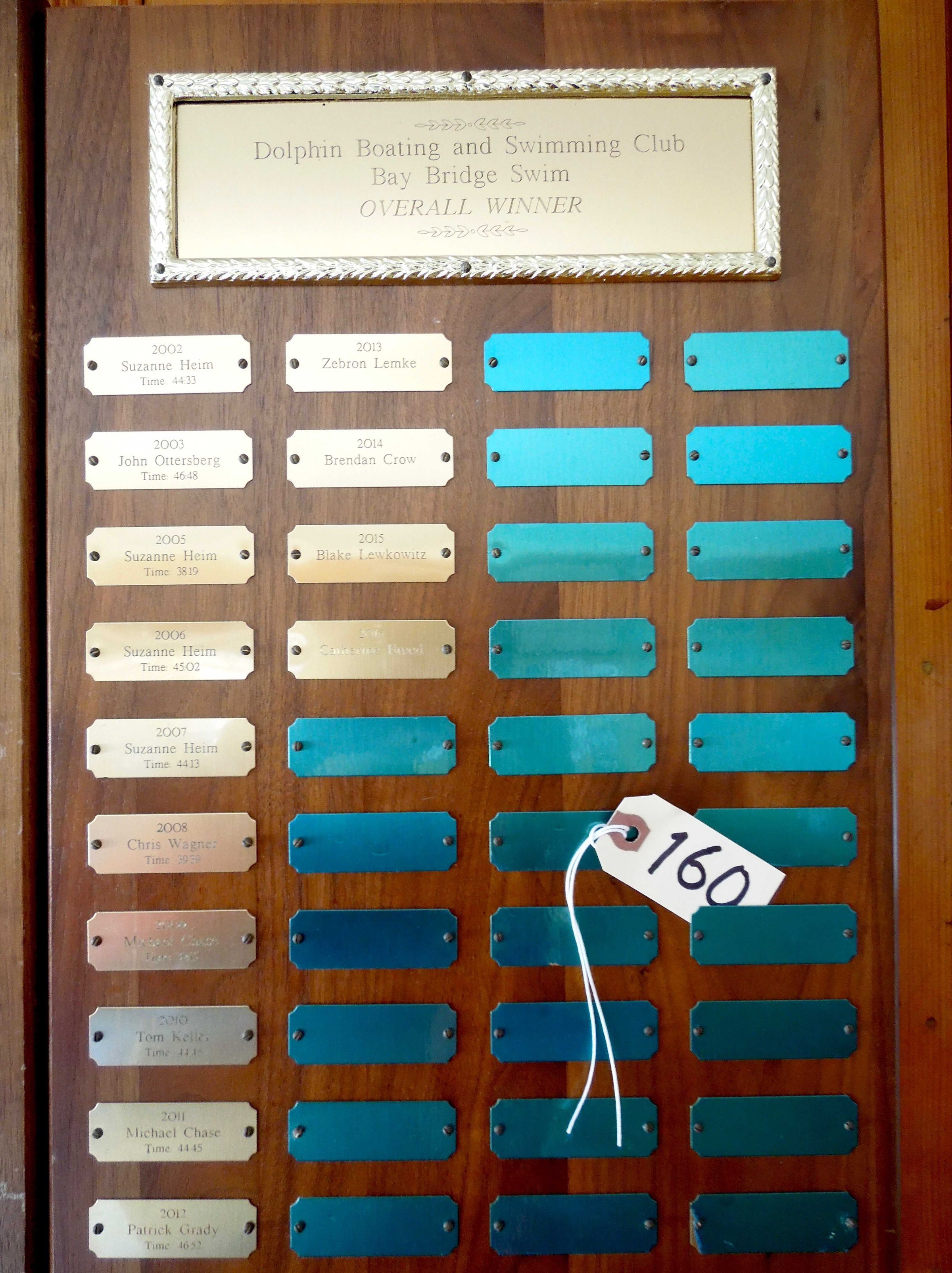 Text on title plate: "Dolphin Swimming and Boating Club - Bay Bridge Swim -Overall Winner"