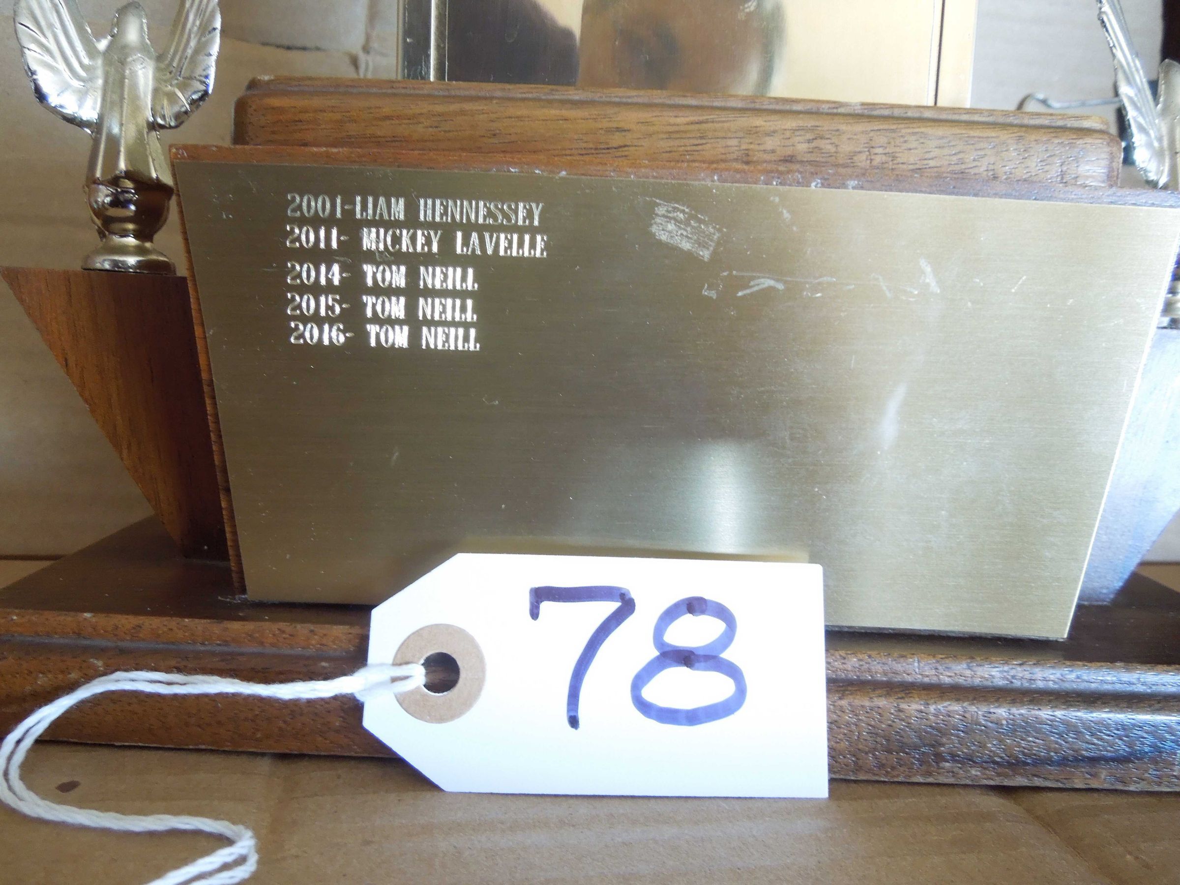 Brass plate #2 on back of base: list names for years 2001, 2011, 2014, 2015, and 2016. Subsequent updates expected.Made/Created