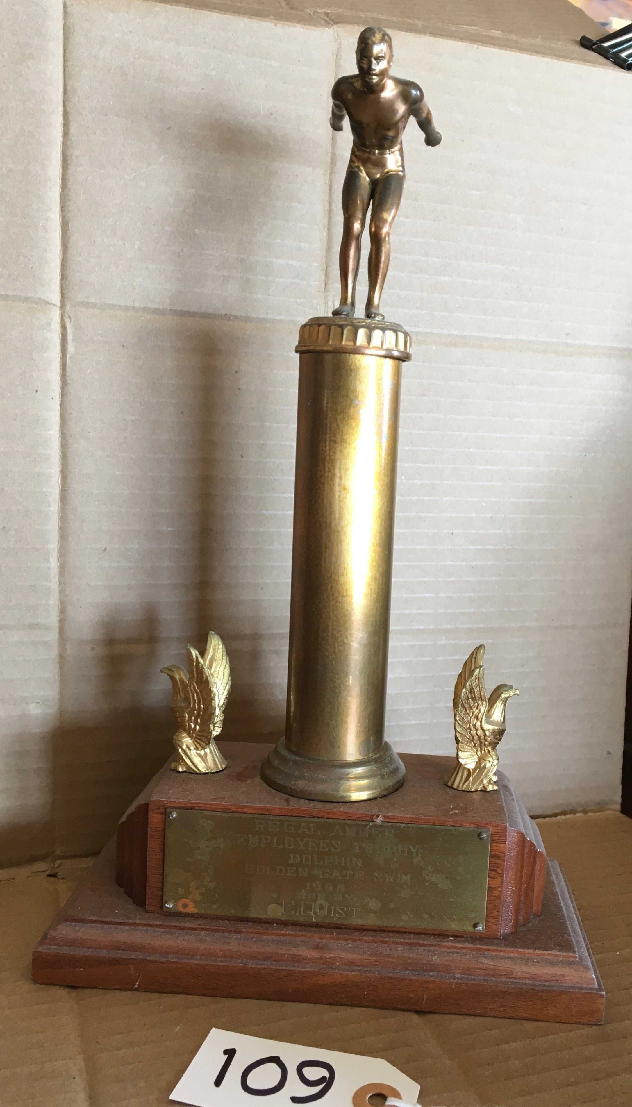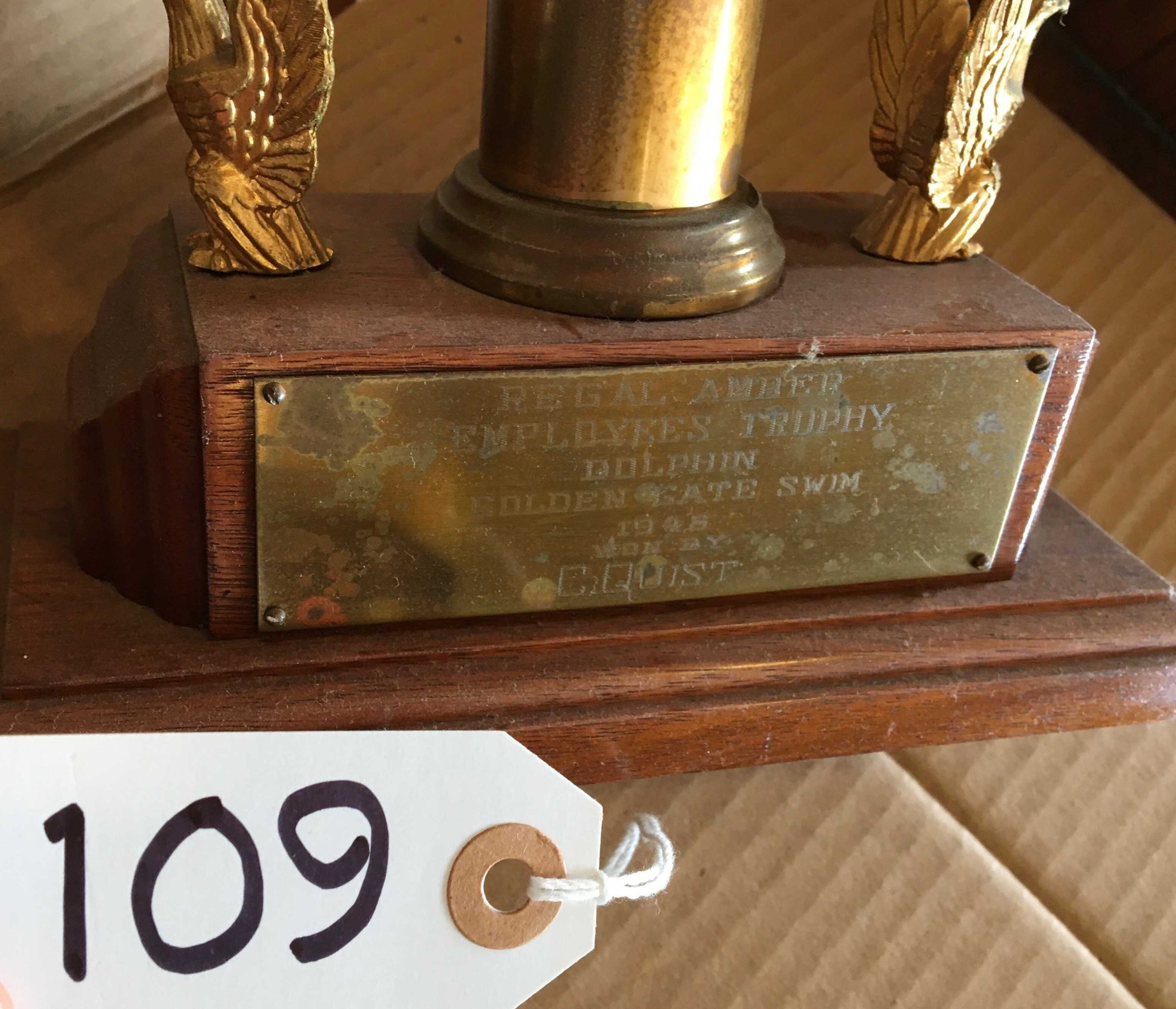 Text on plate: "Regal Amber - Employees Trophy - Dolphin - Golden Gate Swim - 1948 - won by - C. Quist"Made/Created