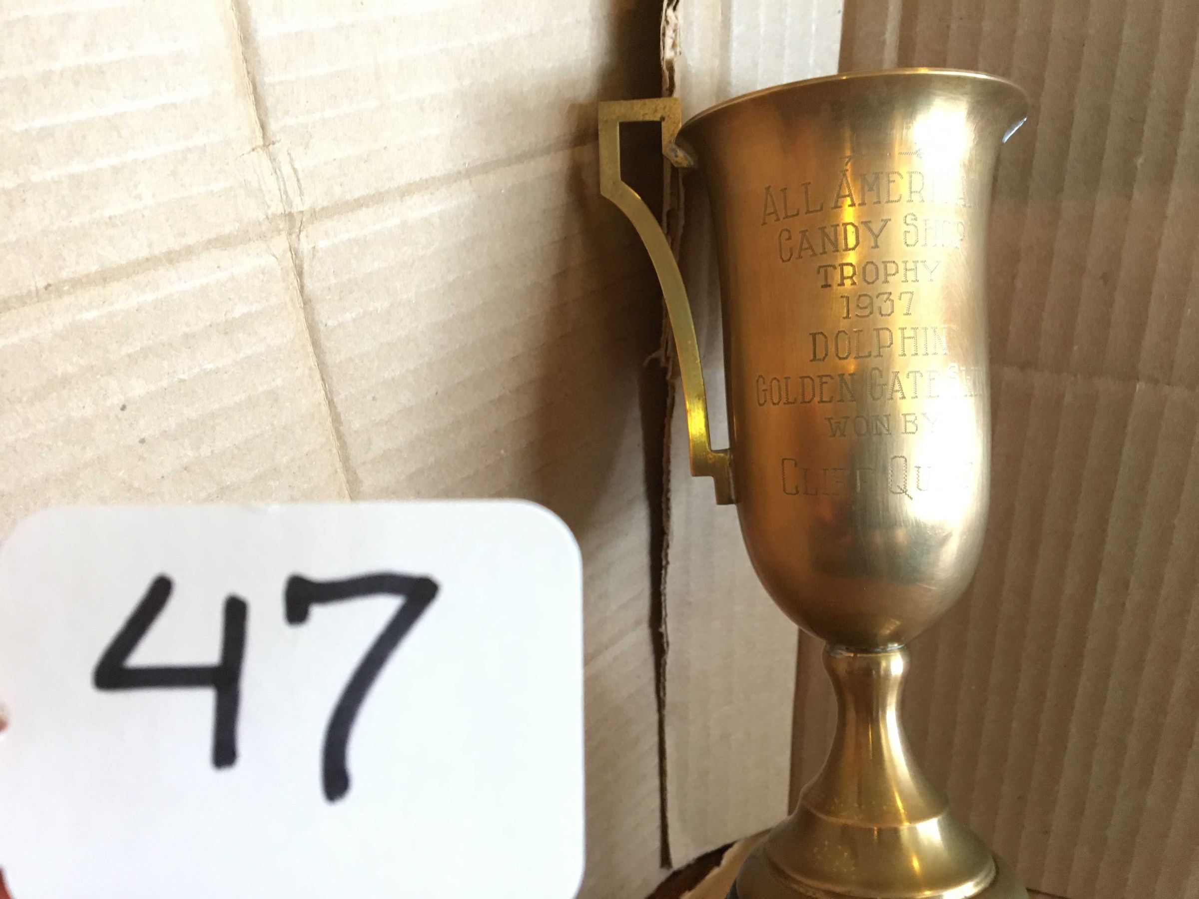 Engraved on front of cup: "All American- Candy Shop -Trophy - 1937