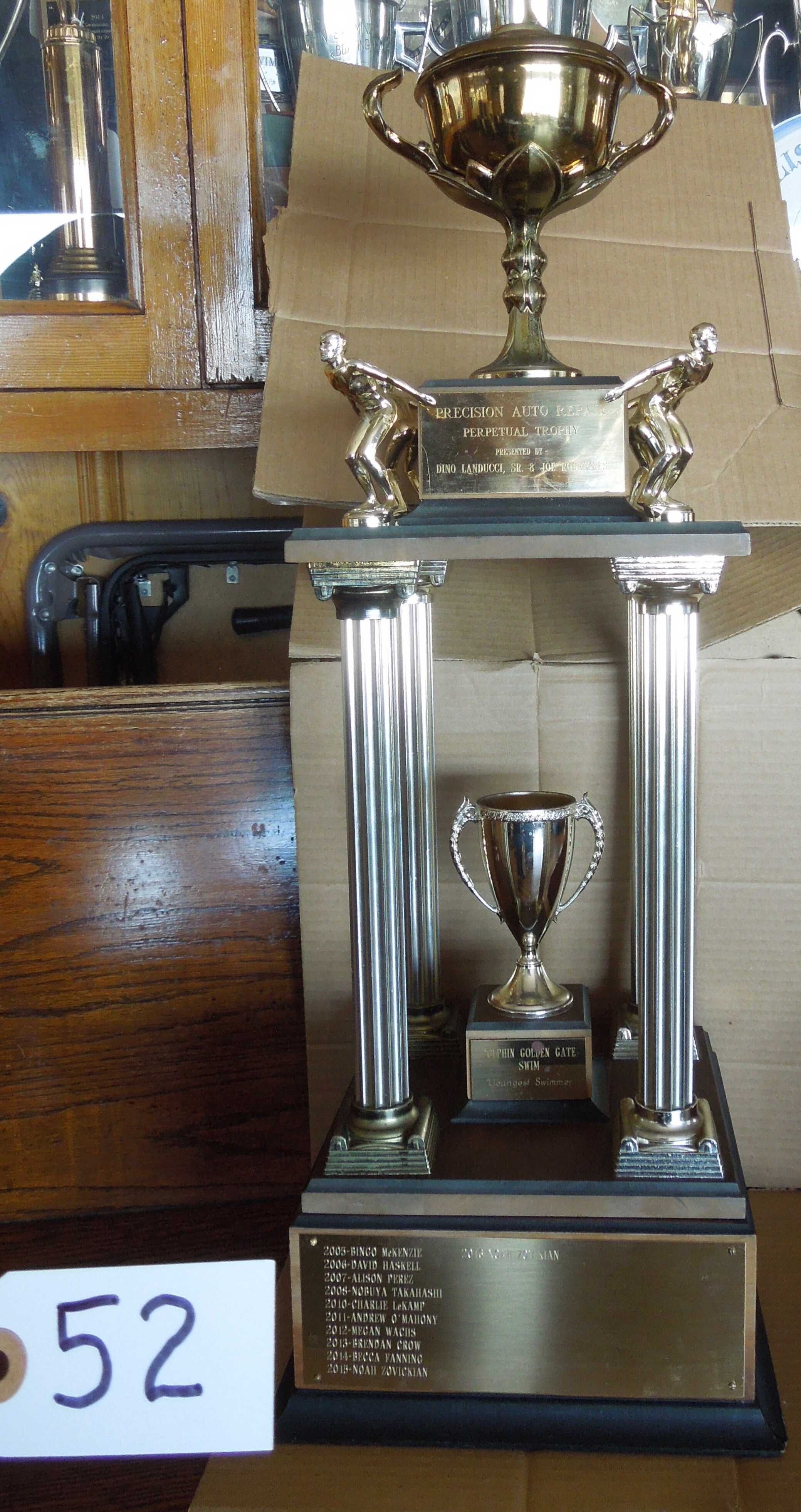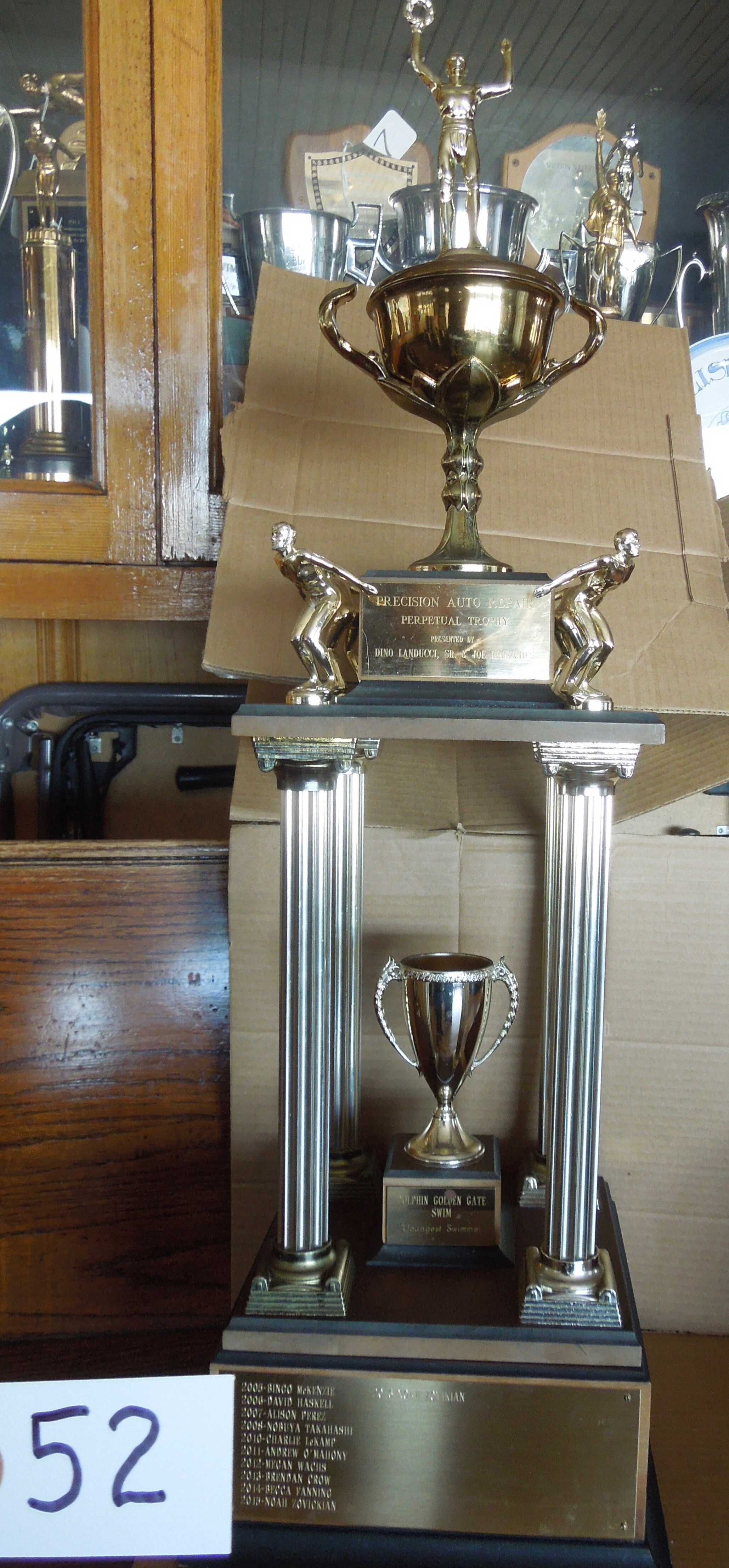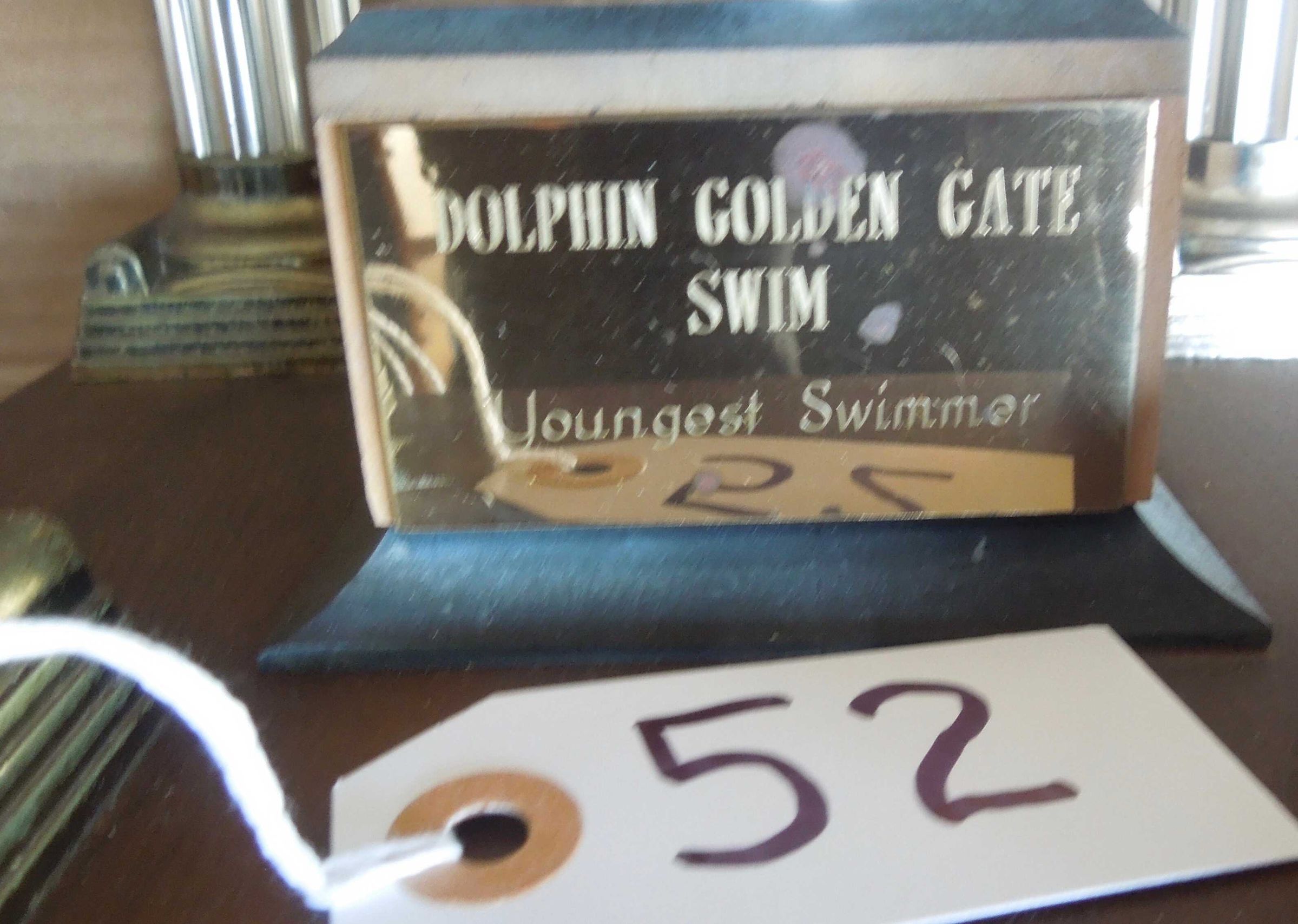 2. On base of smaller cup: "Dolphin Golden Gate Swim Youngest Swimmer"