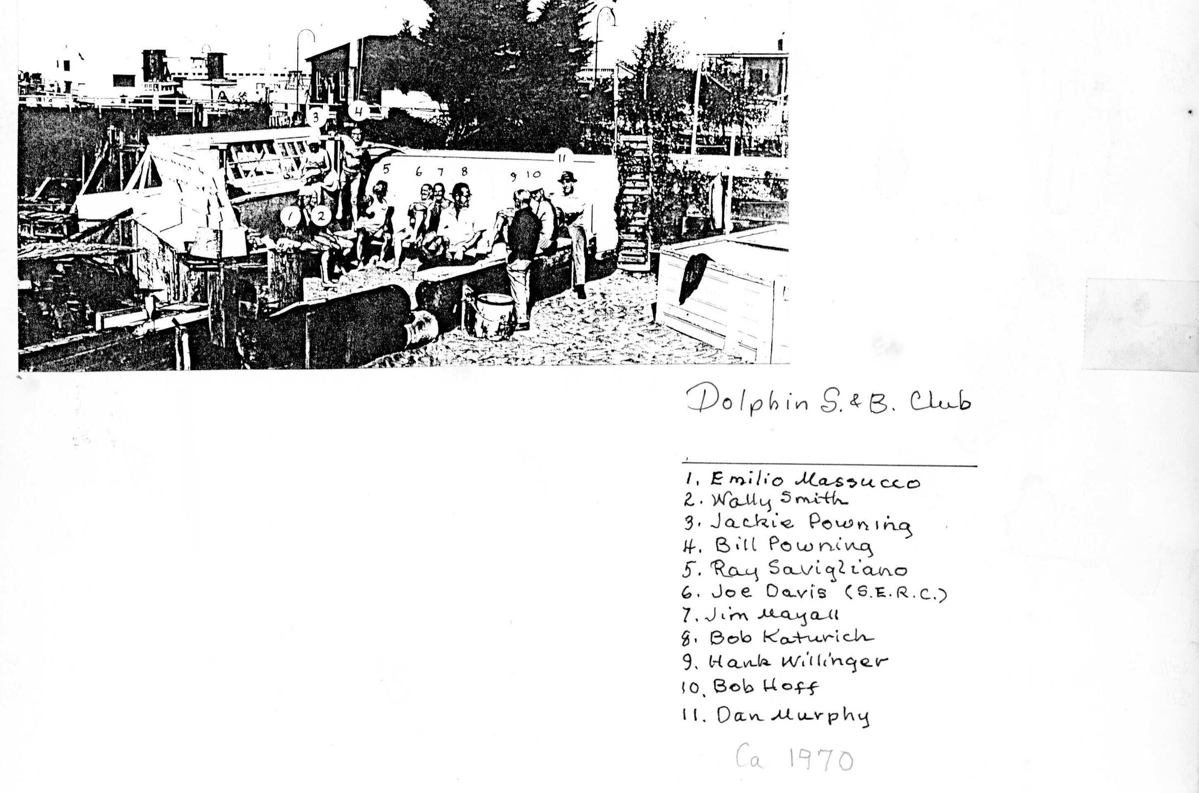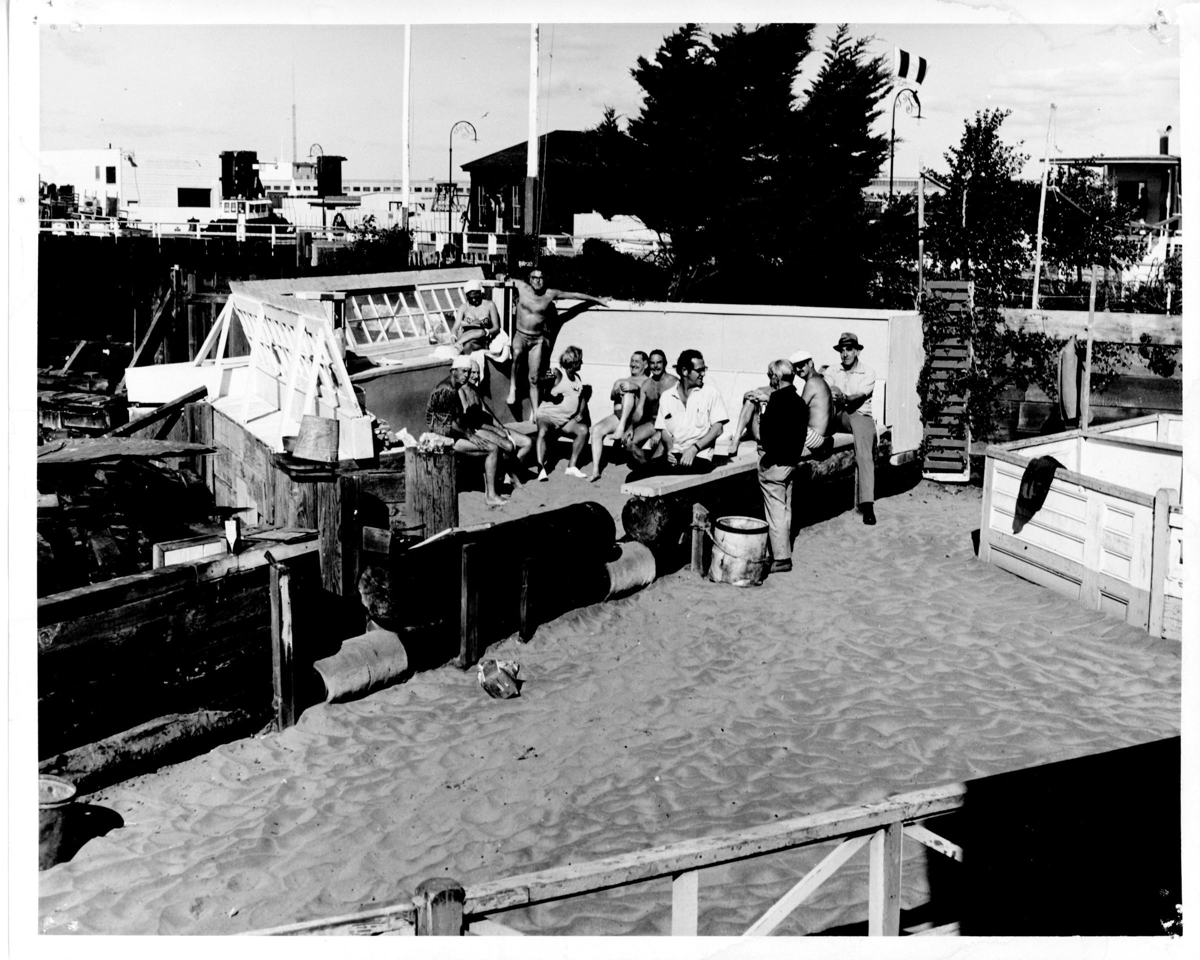 Members of both clubs enjoying the sand pit. Includes Emilio Massucco, Wally Smith, Ray Savigliano, Jim Mayall, Bab Katurich, Hank Willinger