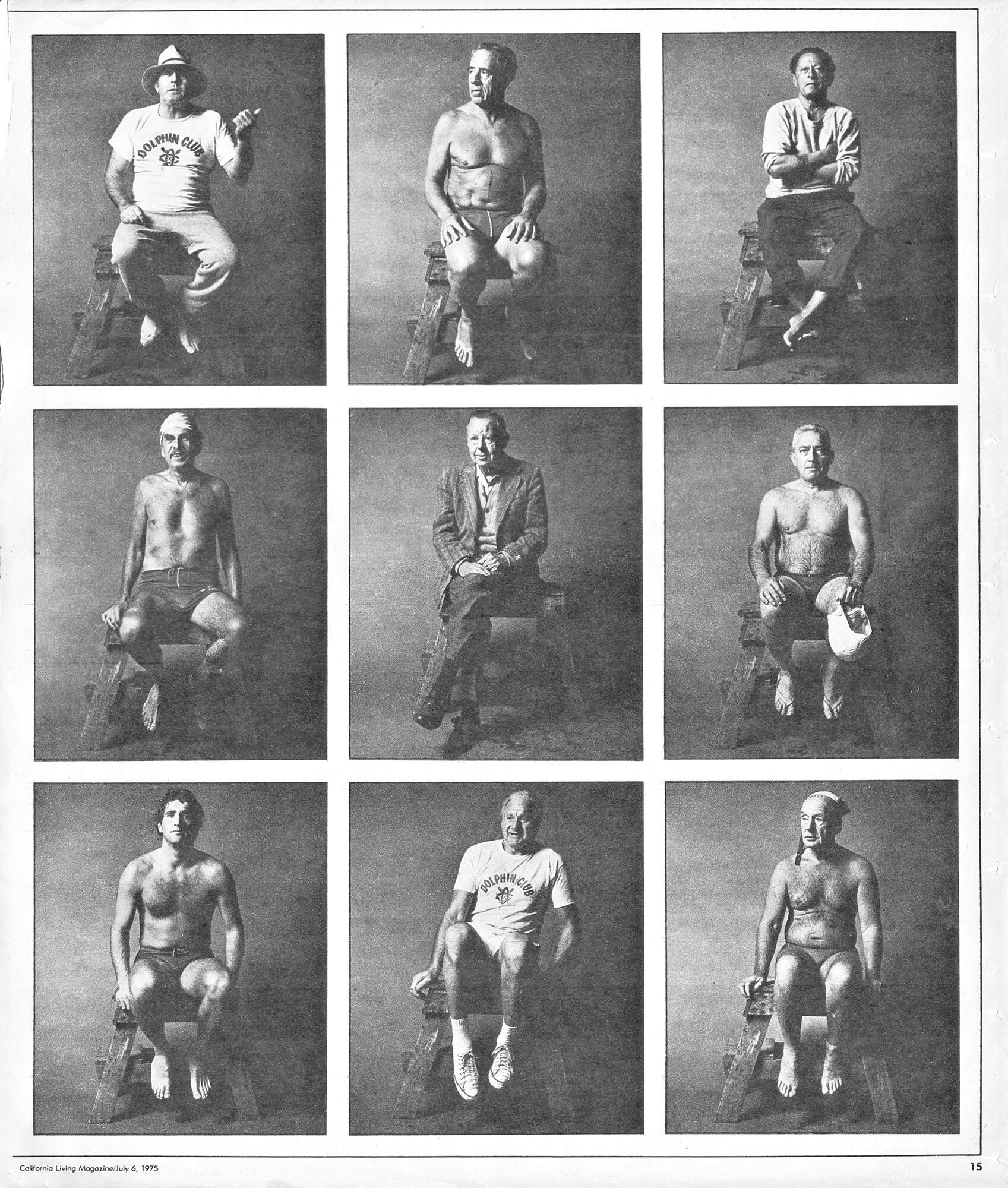 Dolphin Club Members - L to R, Top to Btm: Pete Sturiale, Emilio Massucco, Bert Arias, Robin Kinkead, Lawton Hughes, Bill Walden, unidentified, Dino Landucci, Joe CarrollSubject Person or Organization