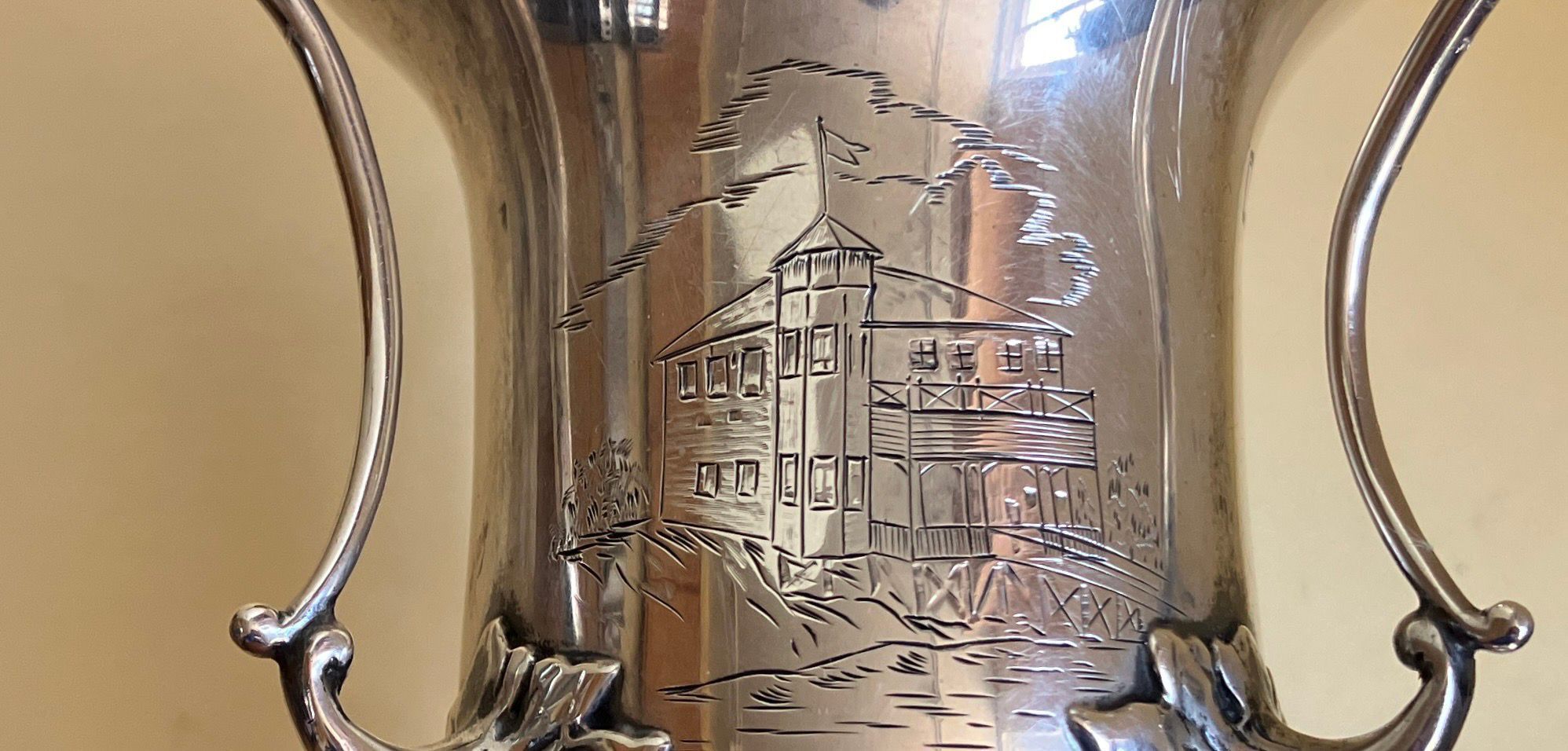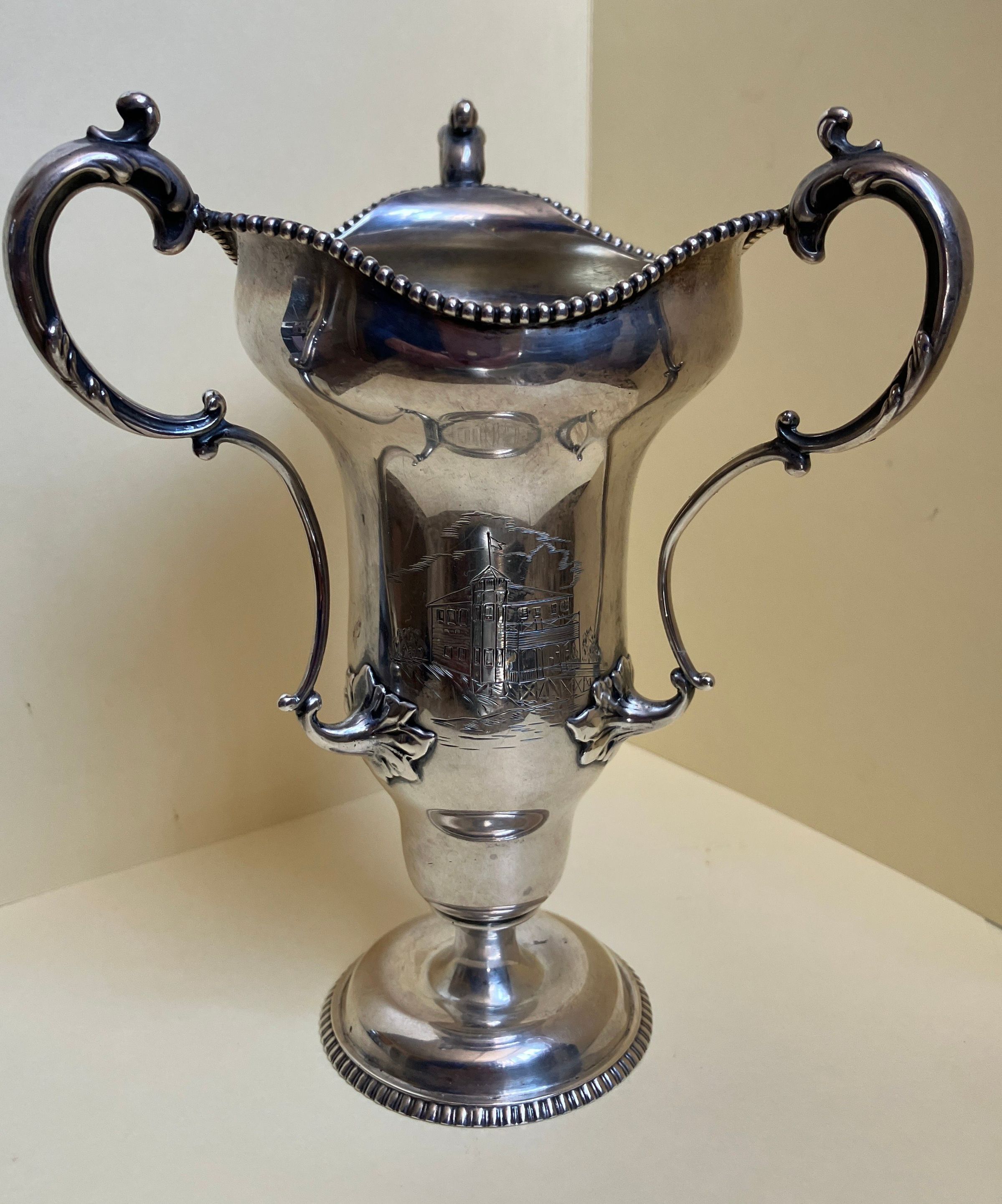 The cup was presented to 1877 charter member A.P. Rothkopf at his 25th Anniversary of membership in August 1902 (see inscription.) There are several photos of Rothkopf in the Photographs folder.