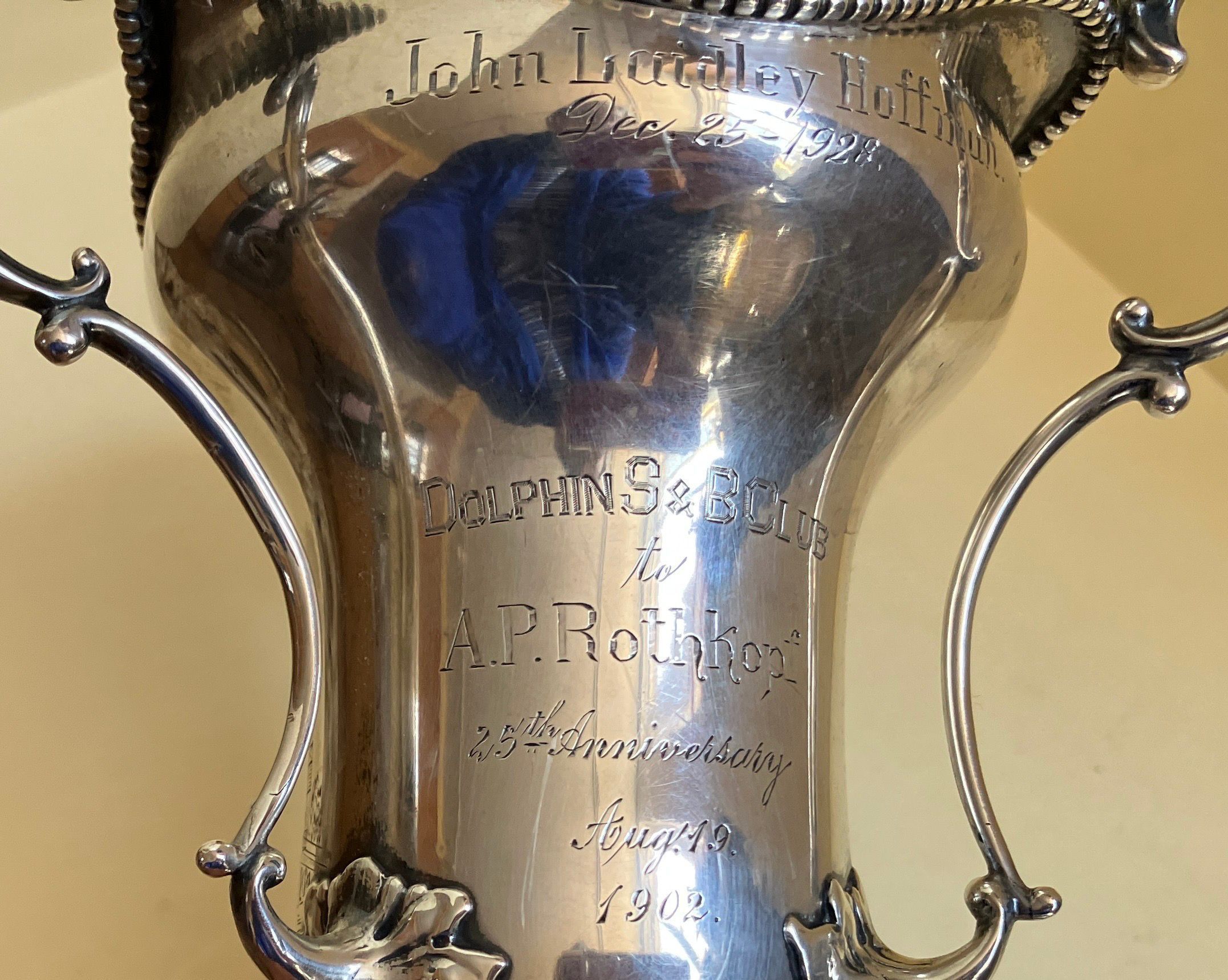 Front side center: "Dolphin S & B Club - to - A.P. Rothkopf - 25th Anniversary - Aug. 19 - 1902"