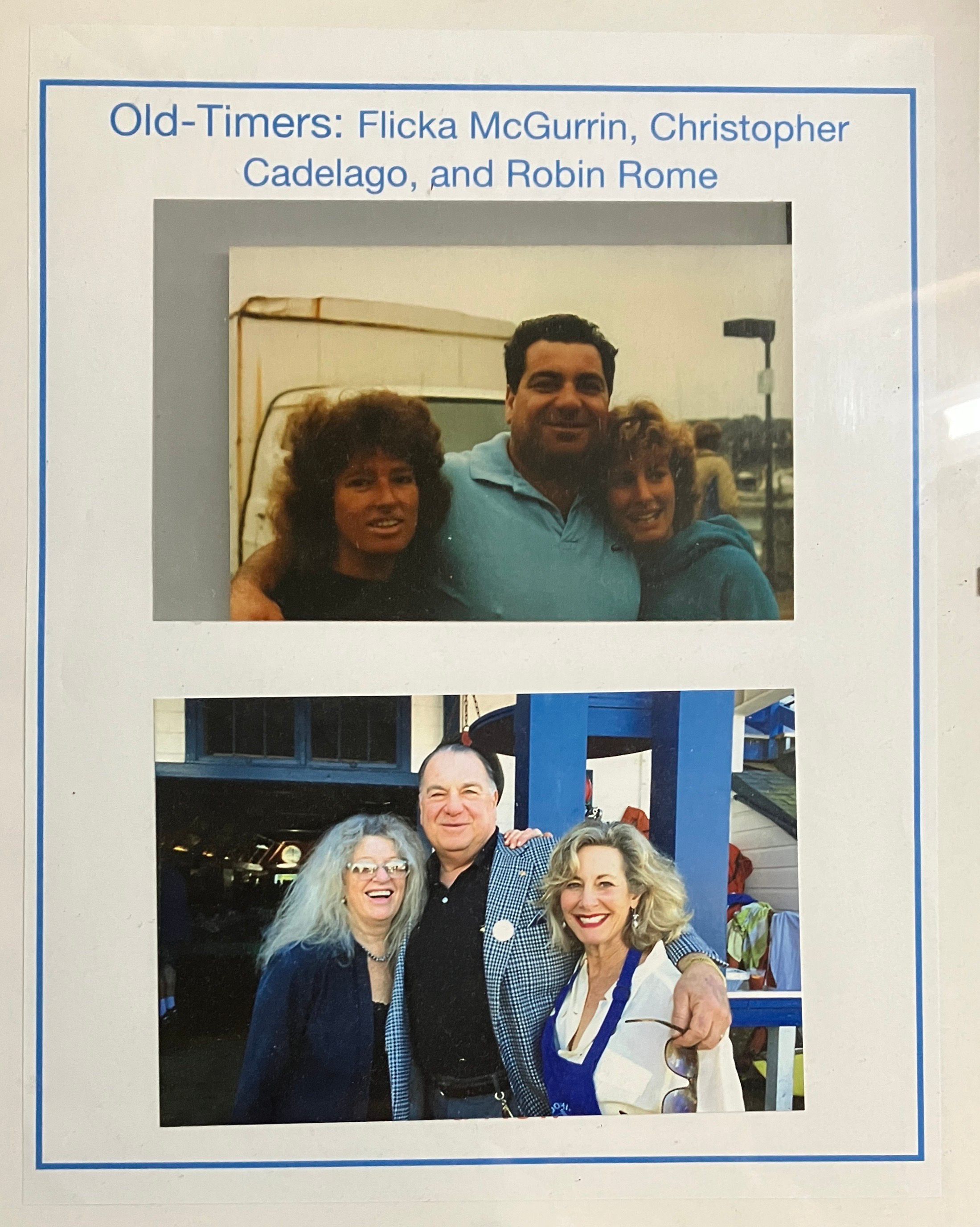Two photographs of life members Flicka McGurrin, Chris Cadelago, and Robin Rome, back then and later.