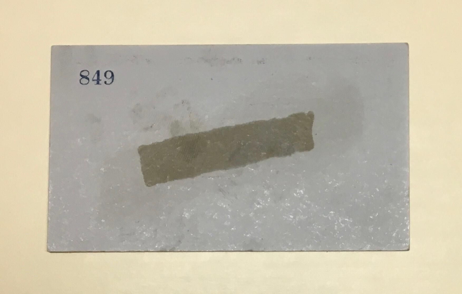 Reverse side of ticket has stamped number 849, and a darkened stripe from former tape.Location