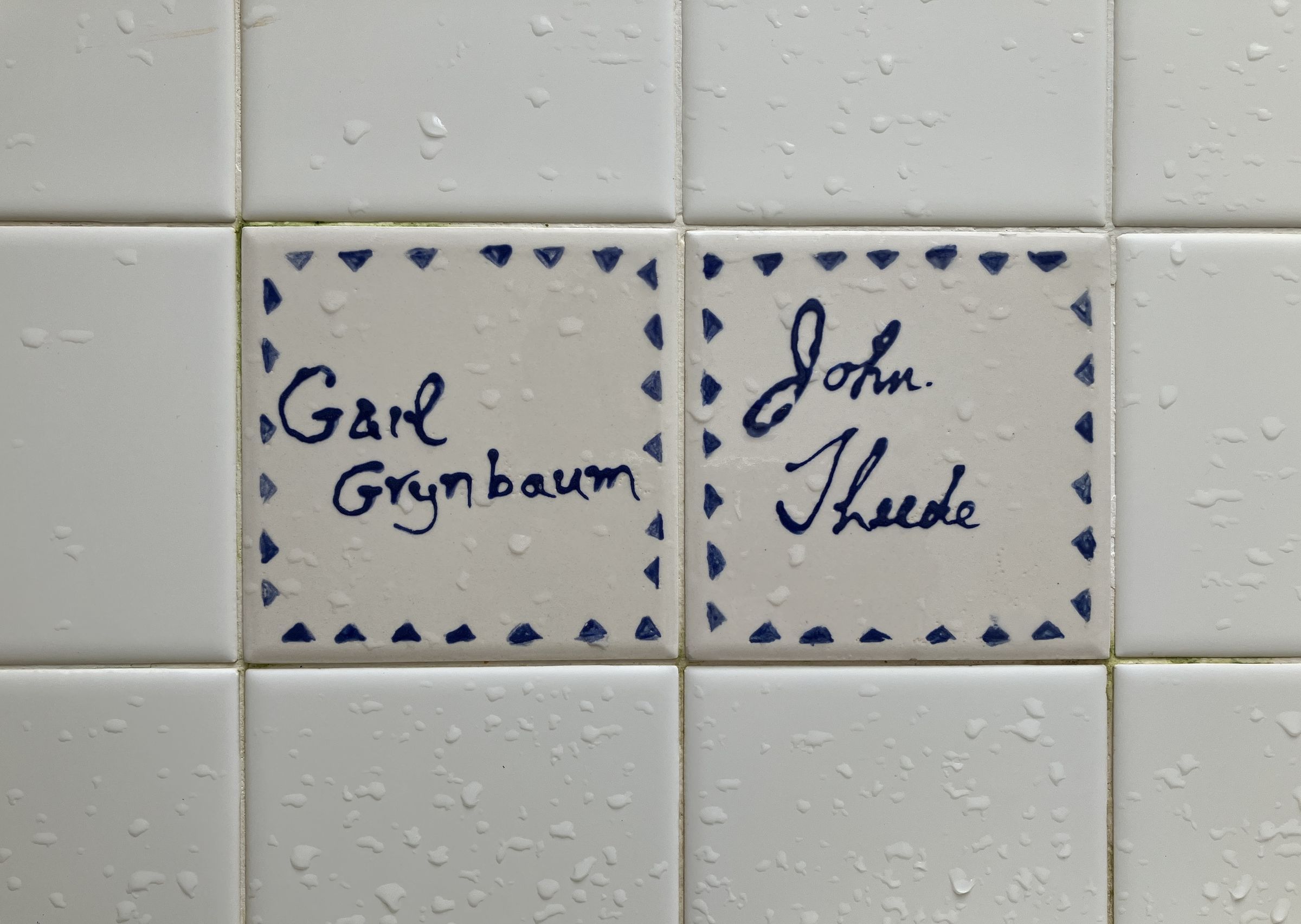 Similar to Tile 29 on east wall, but both names are on one tile.Made/Created