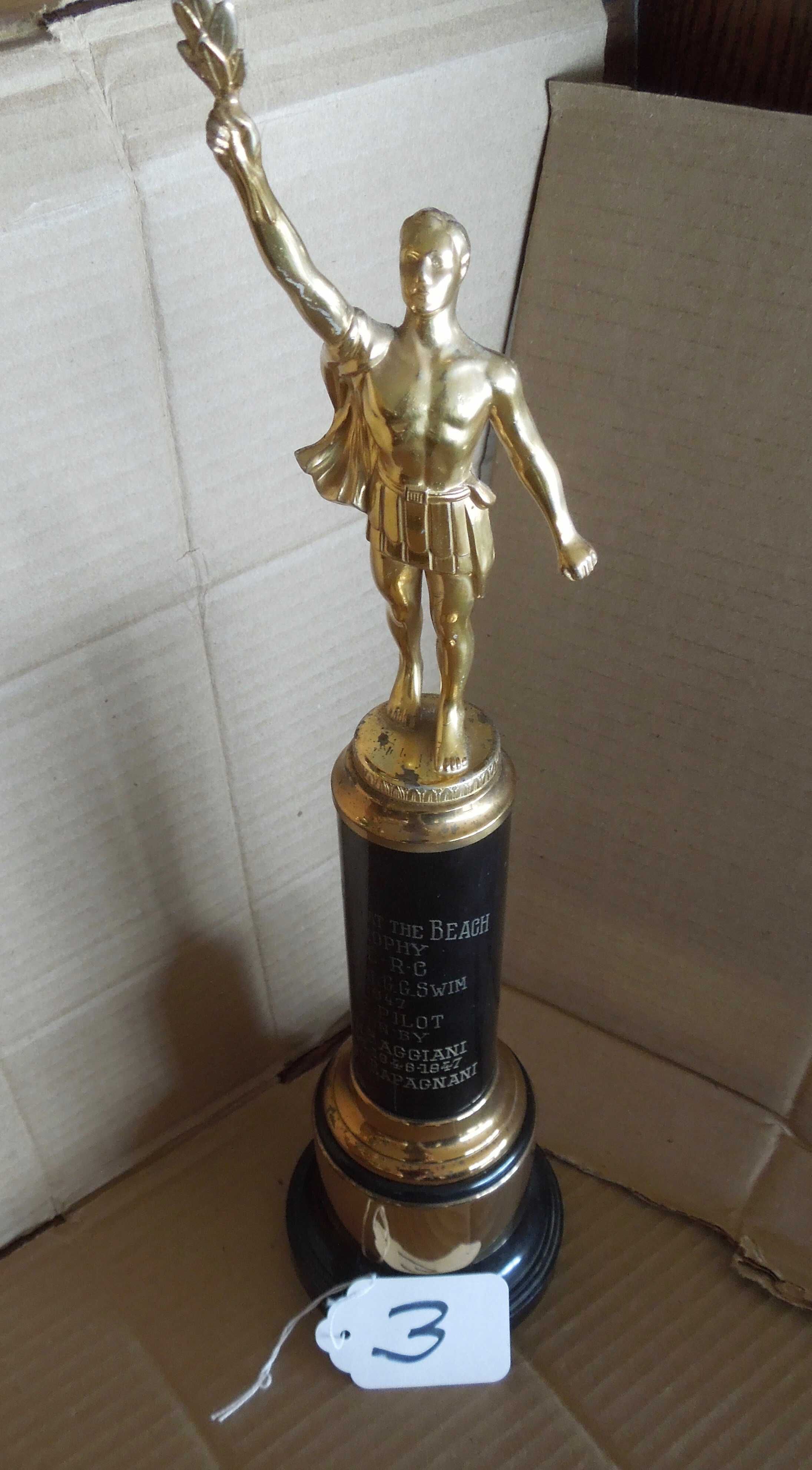 Engraved on base: "Roberts at the Beach -Trophy SERC Annual GG Swim 1947 - 1st Pilot won by Don Baggiani - 1945-1946-1947 Reno Rapagnani"Made/Created