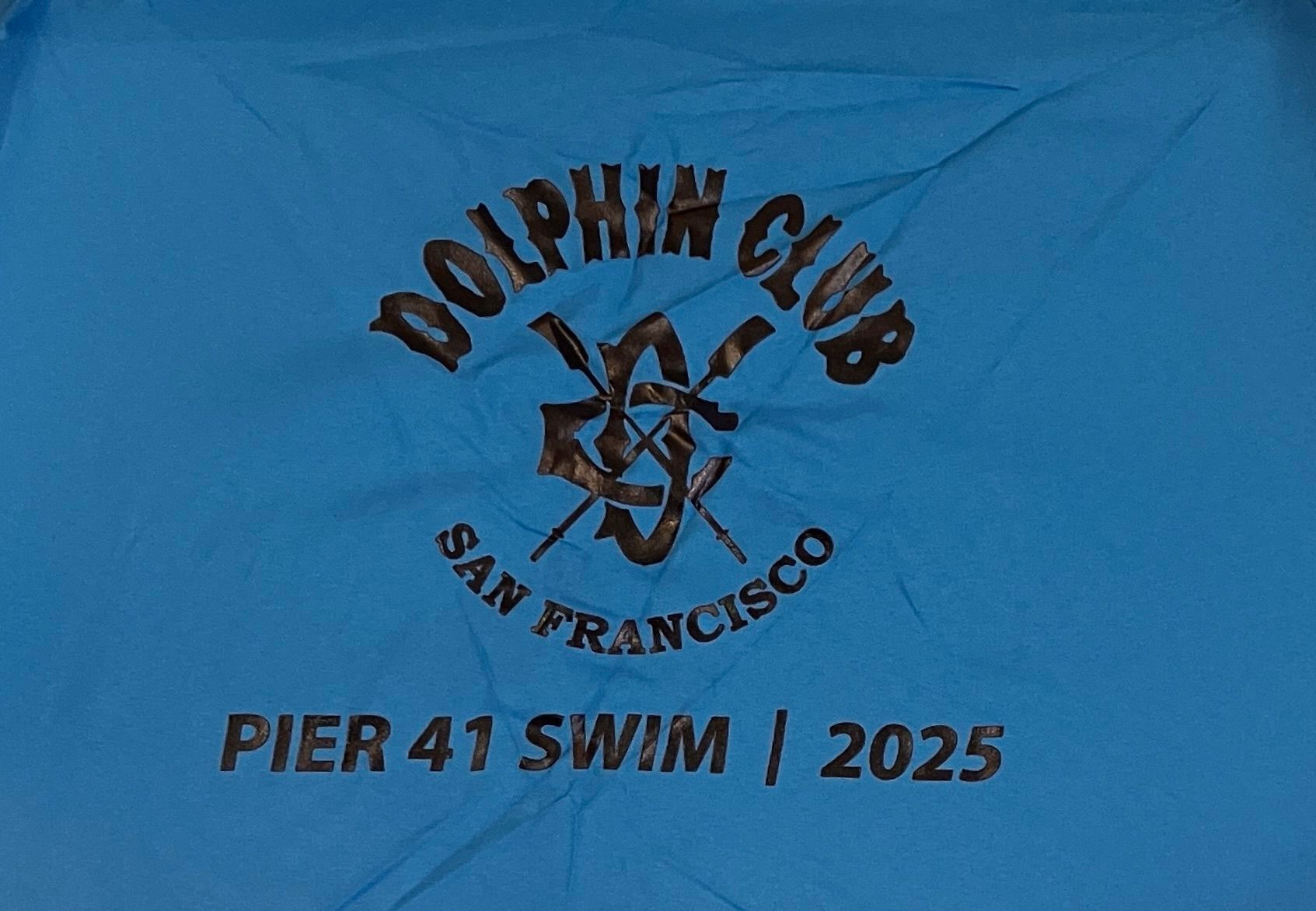Text in black: "Dolphin Club - crossed oars logo - San Francisco - Pier 41 Swim | 2025"