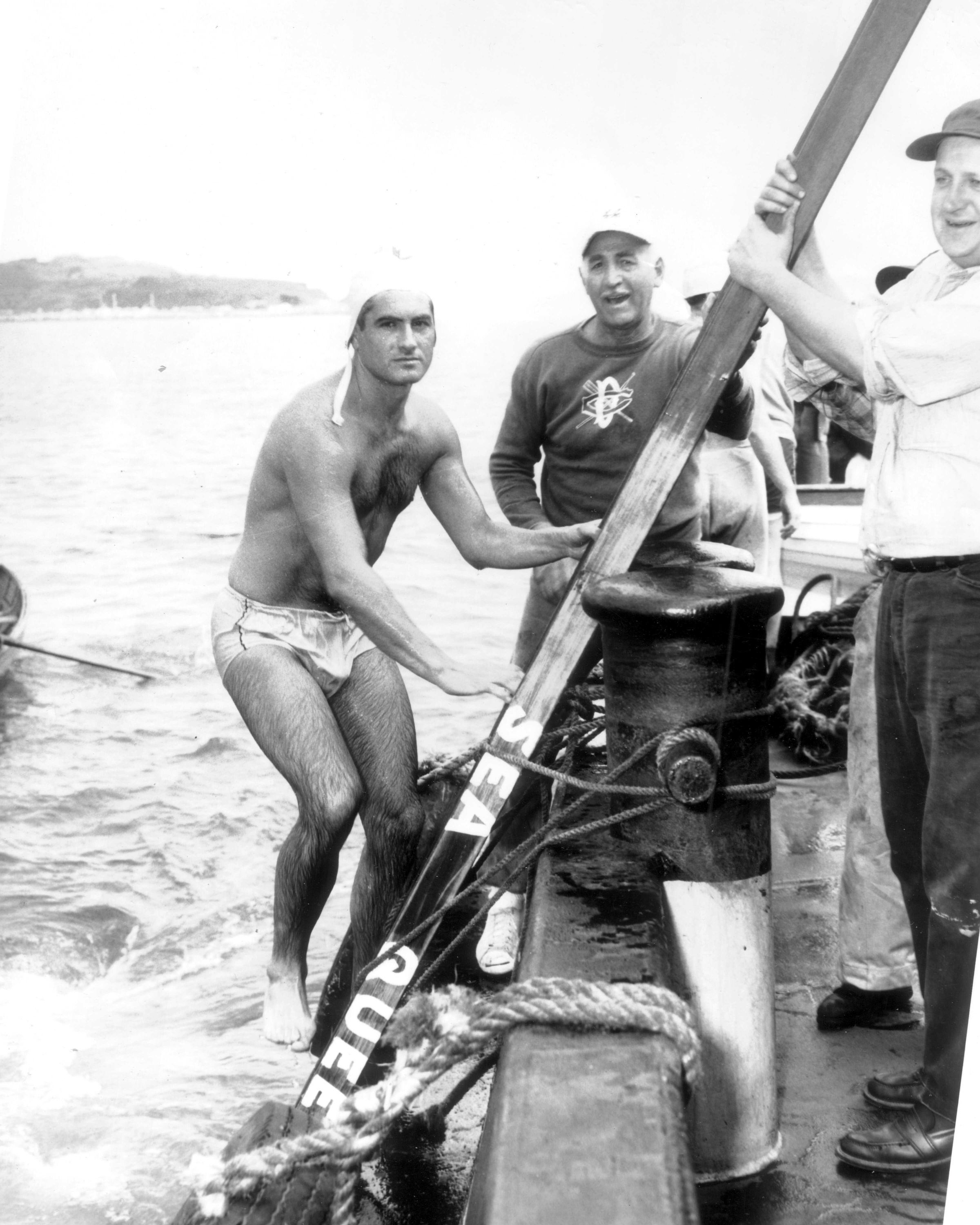 Jim Vanya finishing the 1957 Golden Gate Swim