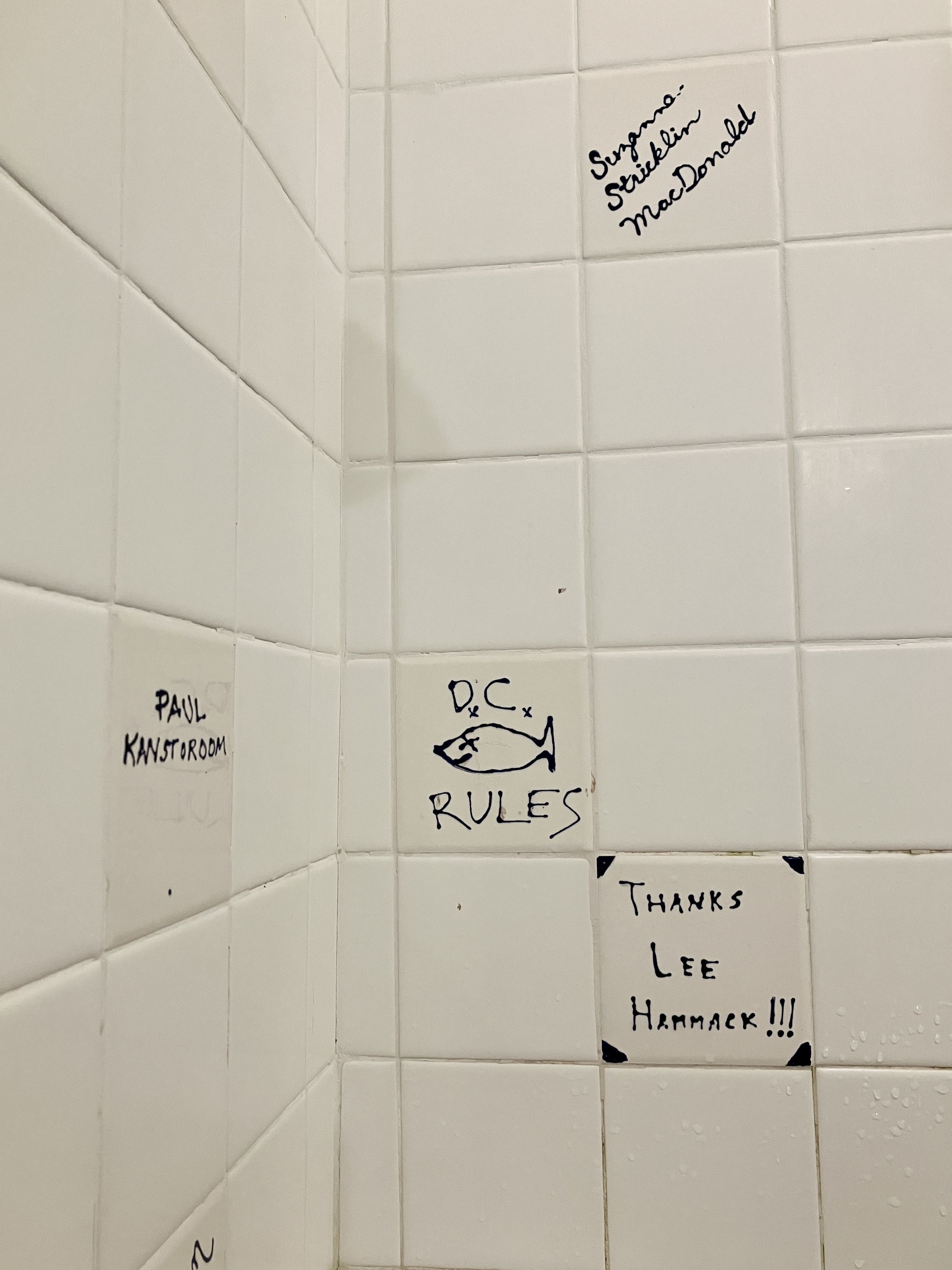 Tiles on west wall, north end and corner.