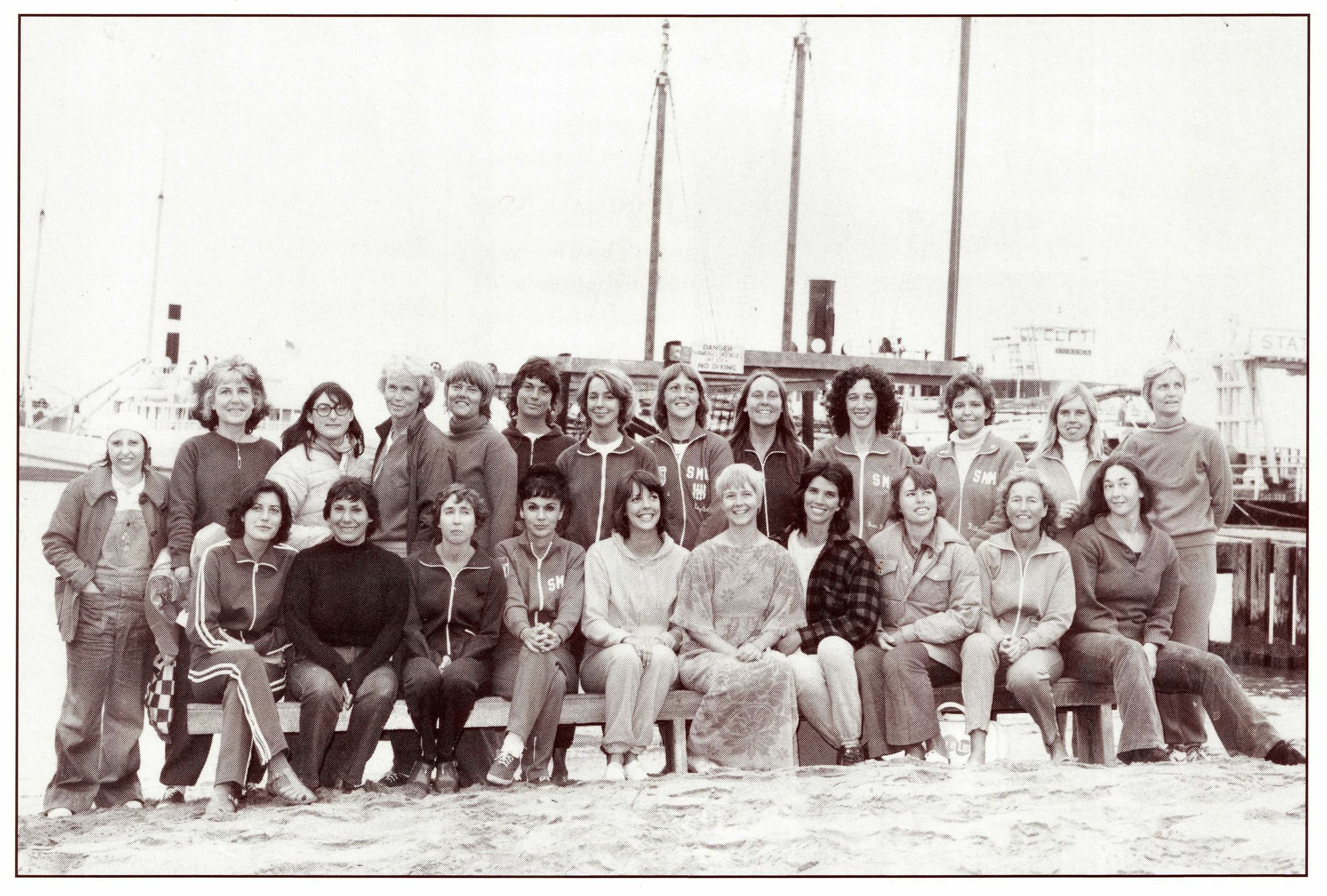 Standing: (L to R) -Eileen (non swimmer), Marilyn Rodman, Gill Breslauer, Zada Taft, Vera Kotas, Cecile O'Boyle, Bev Conrad, Sally Antonchuk, Lee Bender, Veronika Man, Kristy King, Lane Froedisch, Robyn Paulson