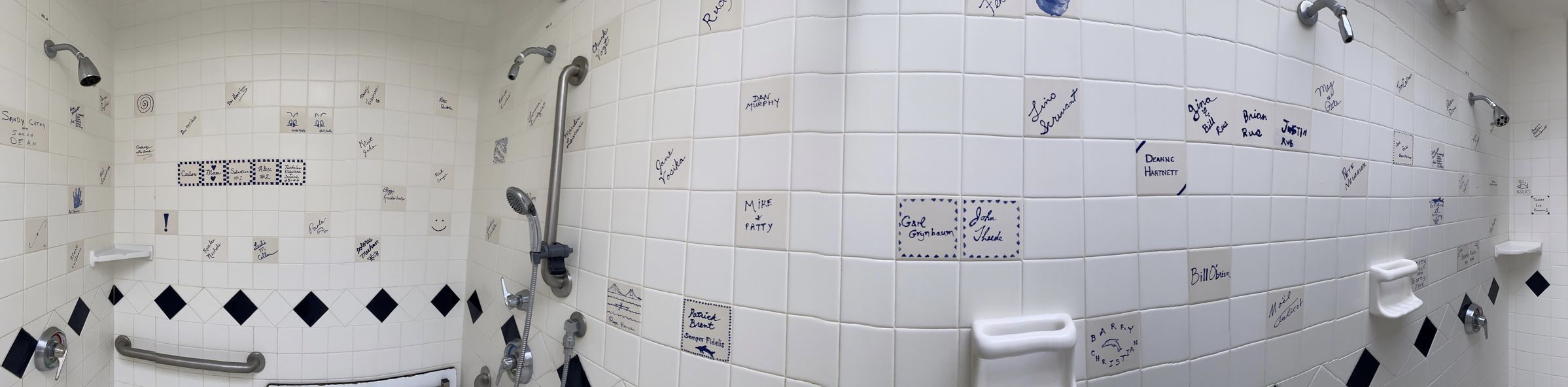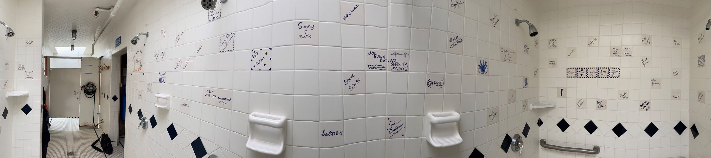 As part of the 1999 Shower-Locker Room Expansion Phase 2, club members were given an opportunity to create personalized wall tiles for the new women’s shower, with a donation of $500 per tile, to help cover the costs the renovation project.
