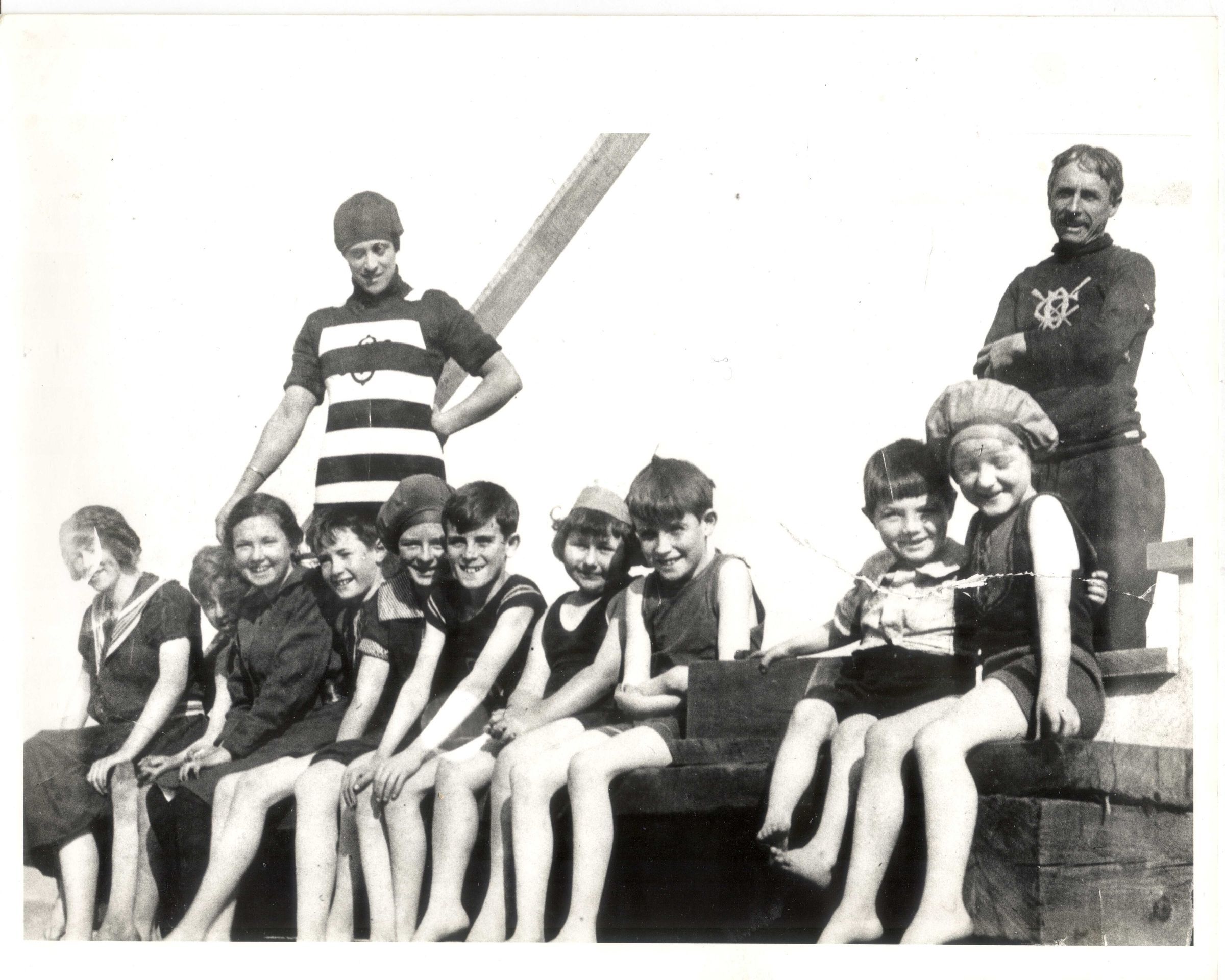 Children in swim outfits and two adultsPhotograph Details