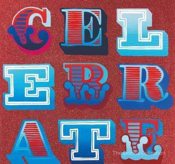 A sparkling celebration in both form and history, Celebrate was used as the cover for British Airways’ First magazine. Its elegant typeface and vivid color make it one of Eine’s more prestigious works.Type of Painting