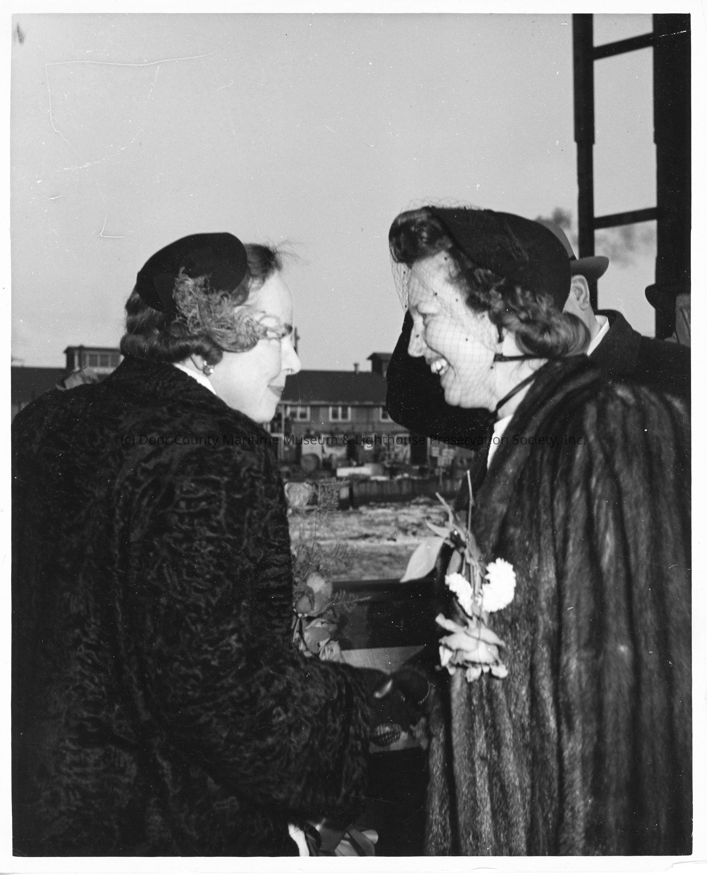 Two women at ship christening