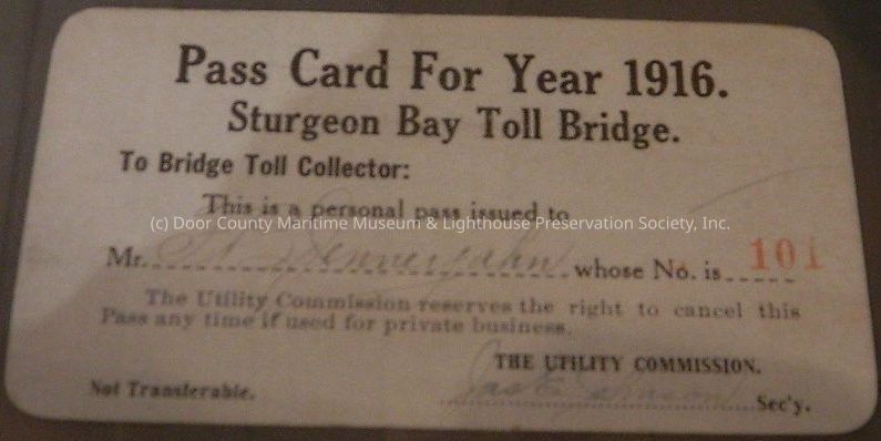 1916 Sturgeon Bay Toll Bridge Admittance CardEntry/Object ID