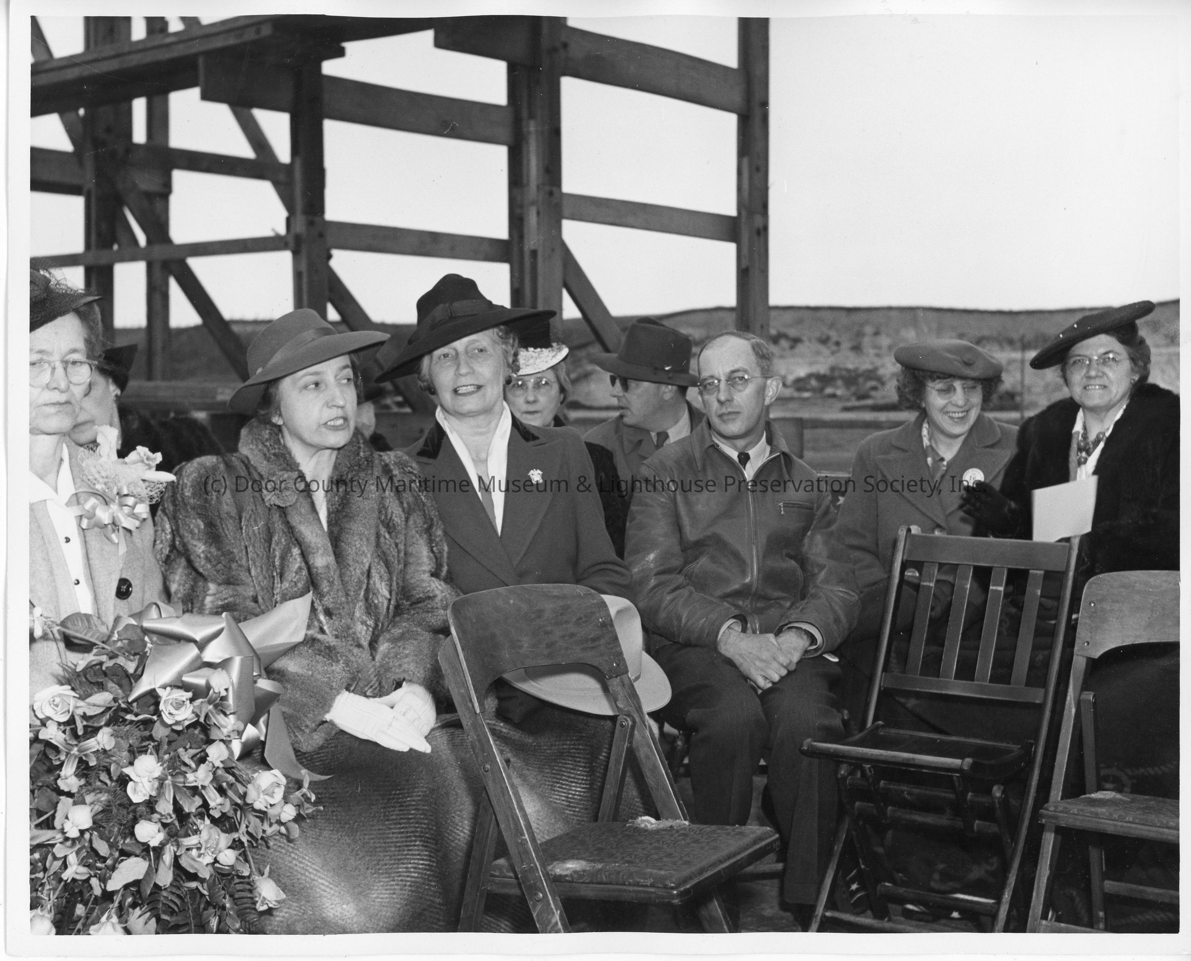Sponsor party sitting at ship christening at Peterson Boat Works